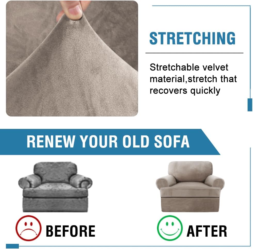 H.VERSAILTEX Sofa Cover 2 Piece Armchair Slipcovers Thick Velvet Couch Cover Furniture Protector Stretch Sofa Covers for 1 Cushion Couch with 1 Individual T Cushion Covers Washable, Taupe