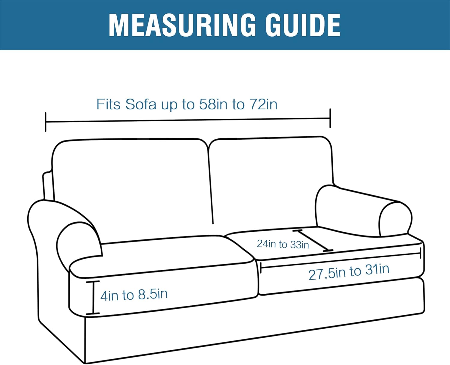 - STAY IN PLACE: Non-skid thick elastic bottom prevents sliding. And in order to better stay in place, the bottom of cover add three additional elastic straps, except box cushion. Our T cushion slipcovers could stay tight without wrinkling, shifting or slipping. Easy to put on and take down. (Installation Instructions Included)