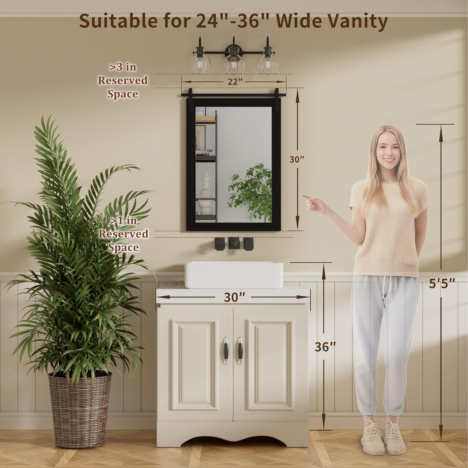 - Wood Framed: Discover a unique rectangle bathroom mirrors inspired by barn doors. Frame made from durable, decay-resistant ash wood, adds both style and shatterproof longevity. Each frame features distinct wood grain patterns, ensuring a one-of-a-kind charm in every piece