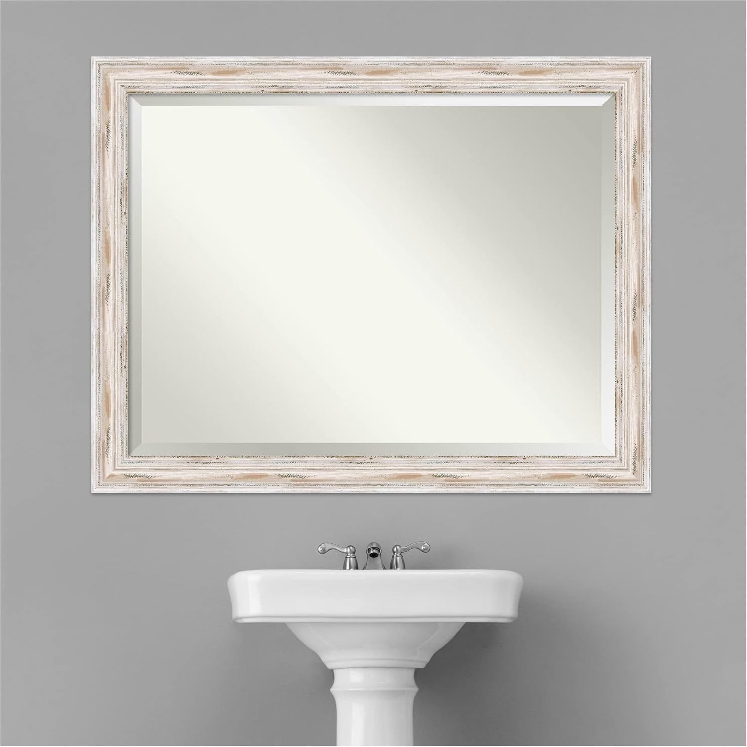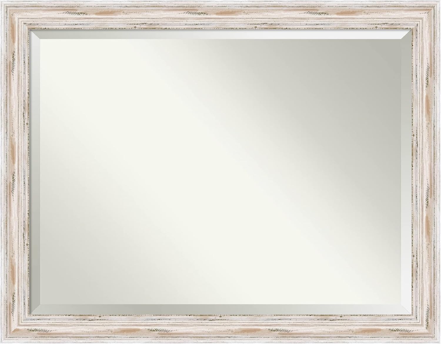 Amanti Art White Bathroom Mirror for Over Sink, 35x45 Alexandria White Wash Rectangle Vanity Mirror, X-Large Coastal Wood Frame, Hangs Horizonally and Vertically, Bathroom Wall Decor, Beveled Edge