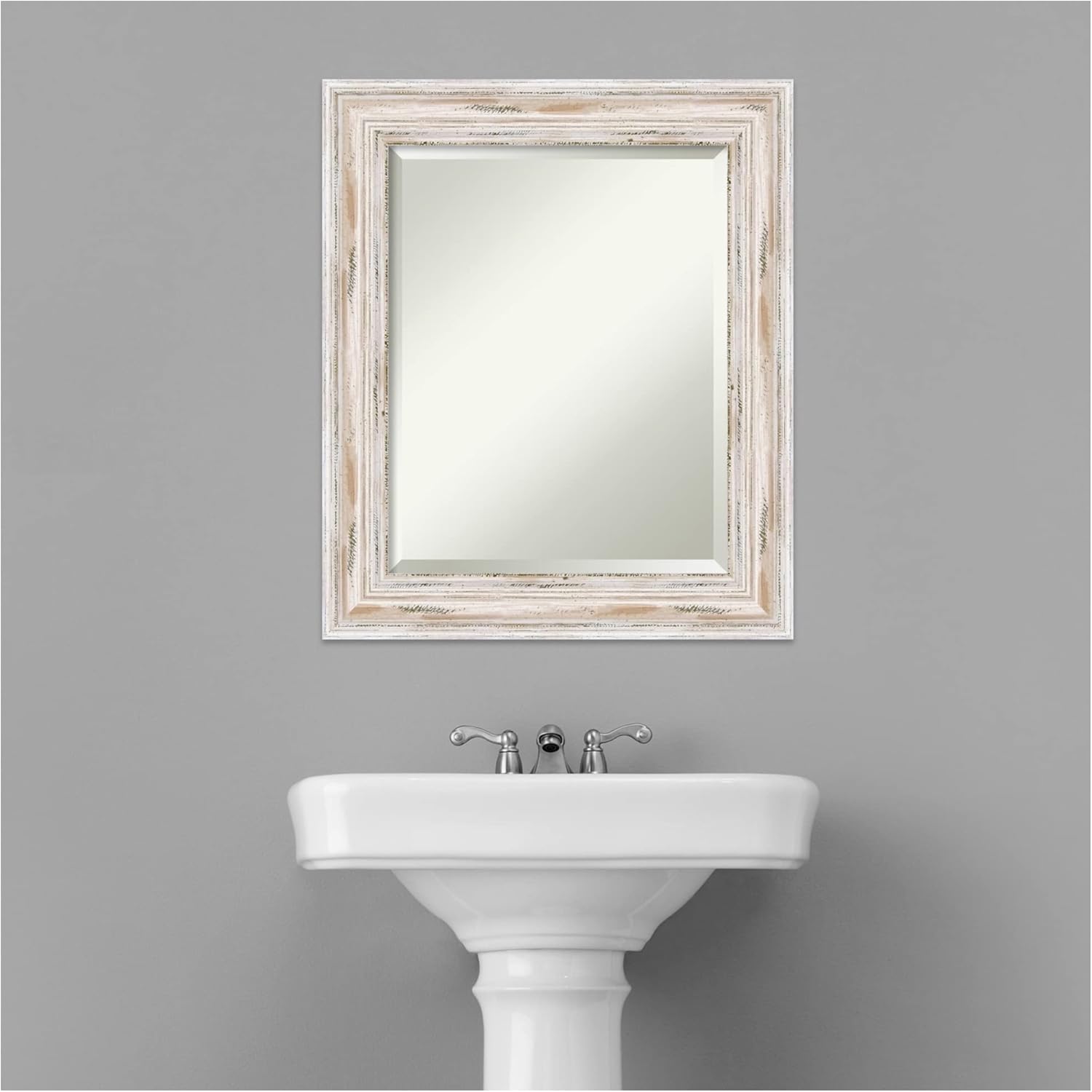 Amanti Art White Bathroom Mirror for Over Sink, 25x21 Alexandria White Wash Rectangle Vanity Mirror, Small Coastal Wood Frame, Hangs Horizonally and Vertically, Bathroom Wall Decor, Beveled Edge