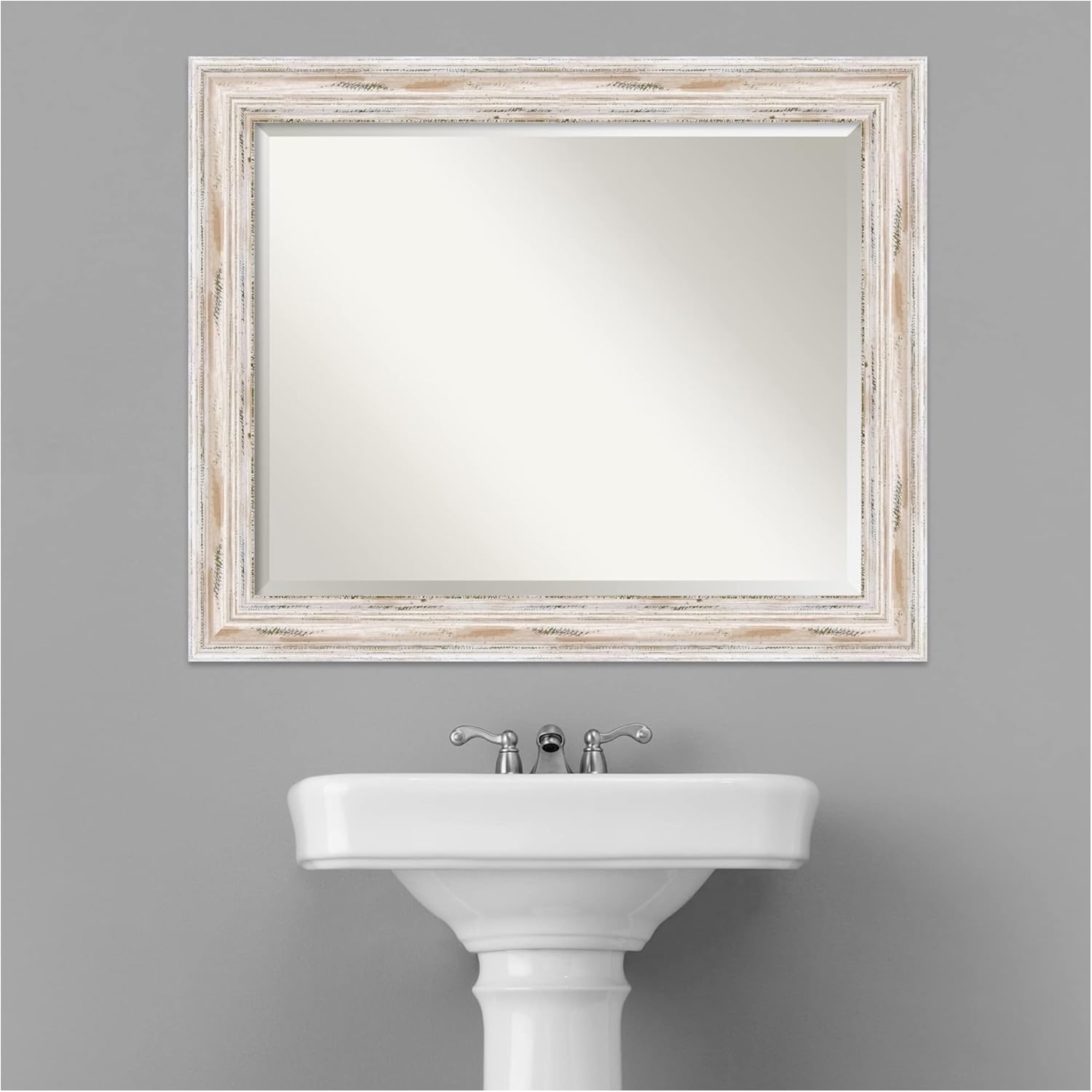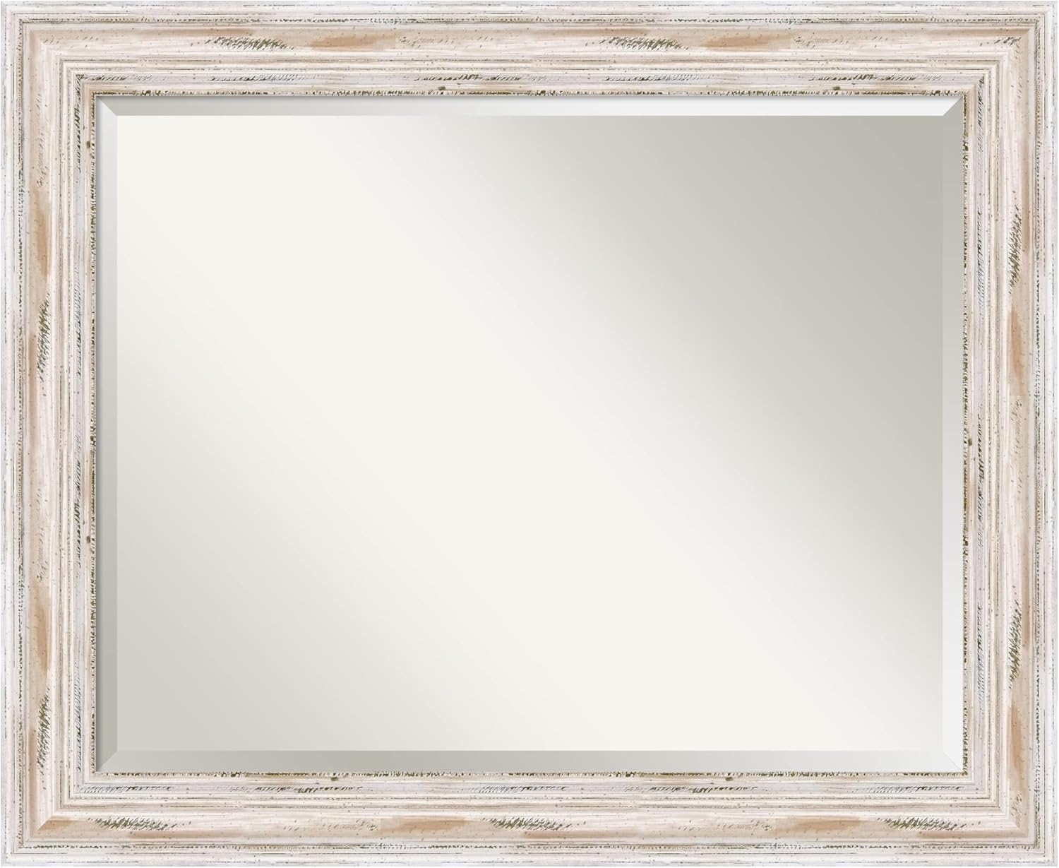 Amanti Art White Bathroom Mirror for Over Sink, 27x33 Alexandria White Wash Rectangle Vanity Mirror, Large Coastal Wood Frame, Hangs Horizonally and Vertically, Bathroom Wall Decor, Beveled Edge