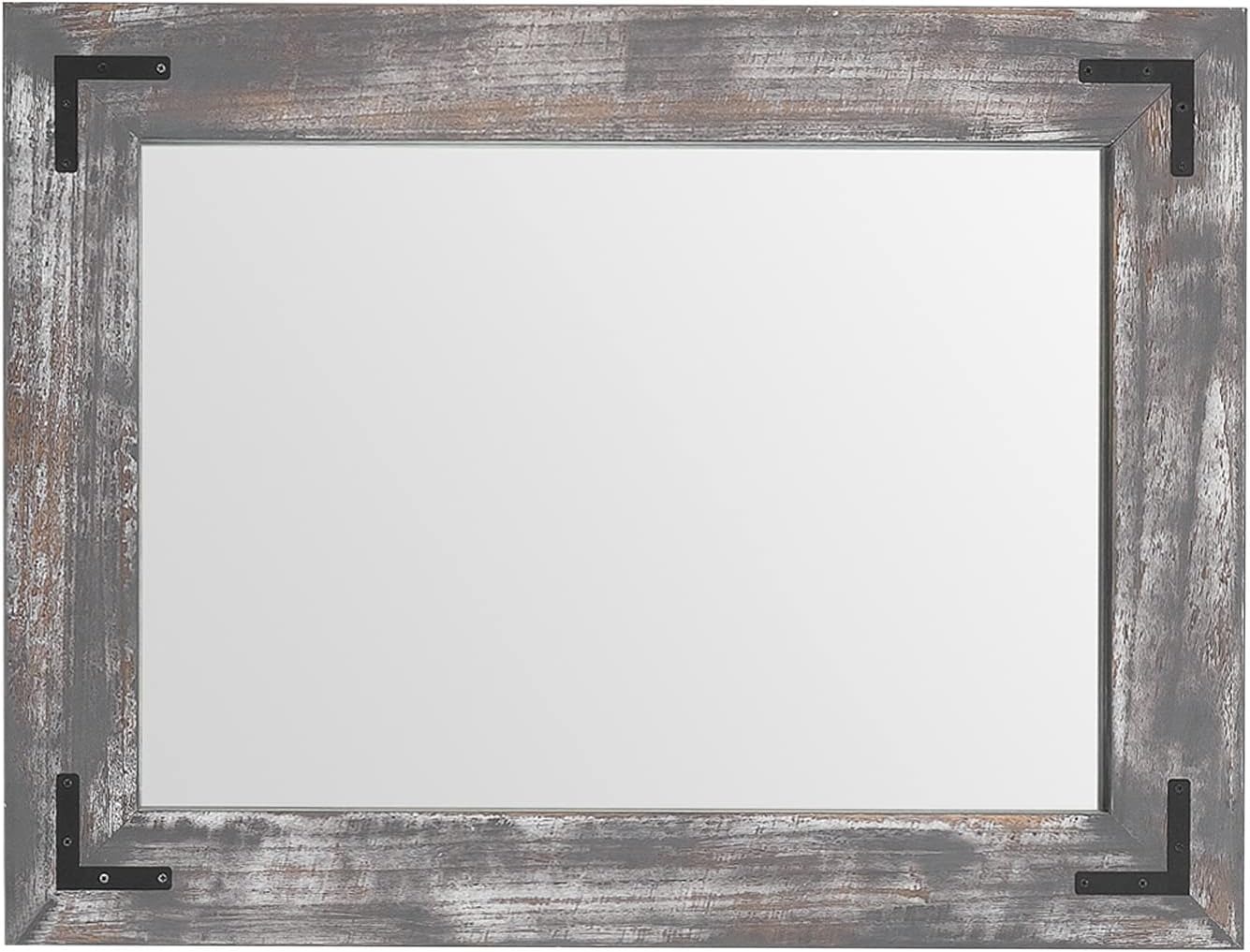 - GREAT QUALITY AND DURABLE- This mirror is set within a wooden frame in a distressed brown for a dash of rustic character. The mirror is constructed of authentic 5mm silver backed glass which is explosion-proof and scatter prevention, super HD imaging, beautiful, natural and no distortion. Our wood frame mirrors are made to strict commercial standards.
