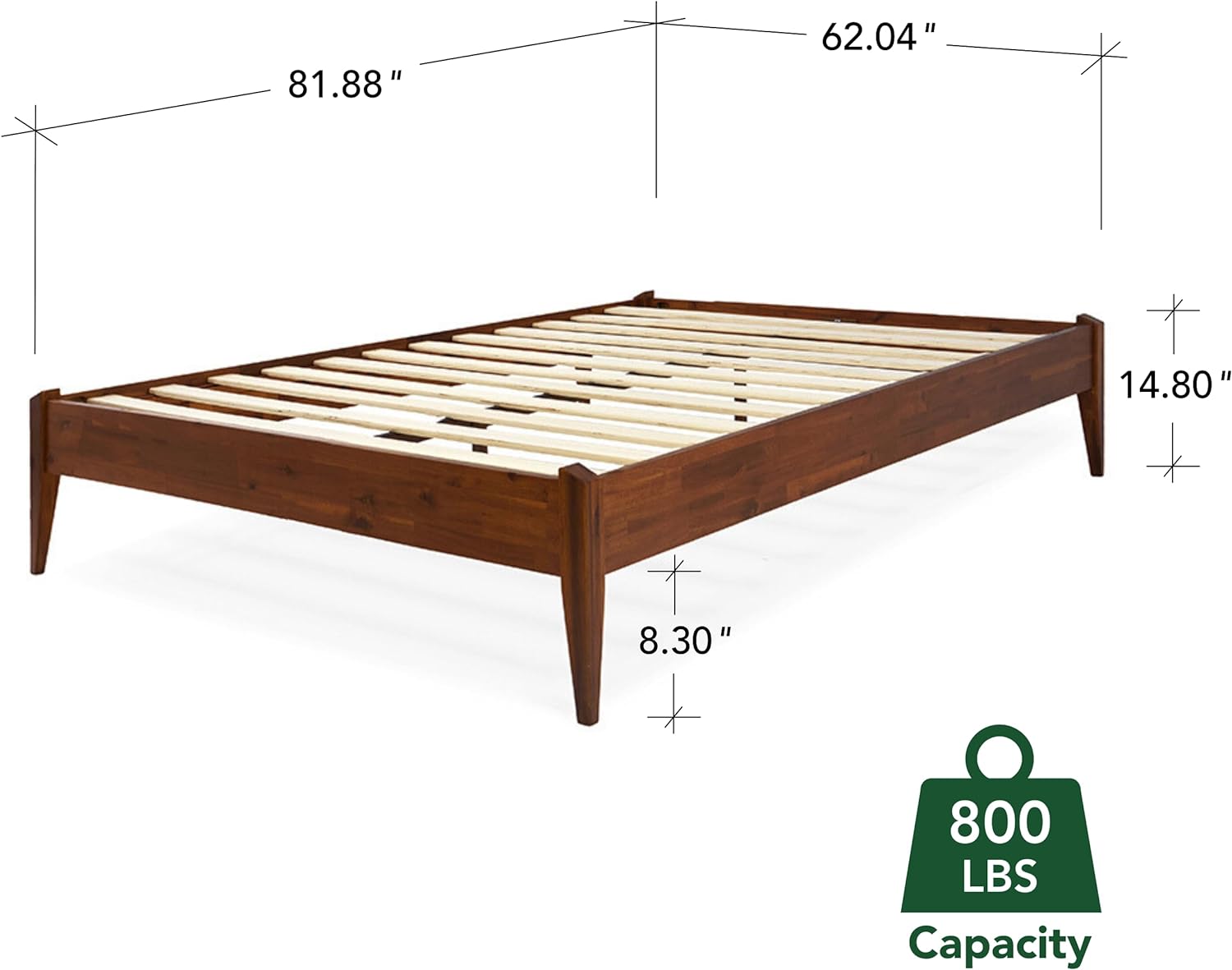 Bme Dinkee 15-Inch Solid Wood Queen Platform Bed Frame - Japanese Joinery, Minimalist Style - Wood Slats, Easy Assembly, No Box Spring Needed - Chocolate