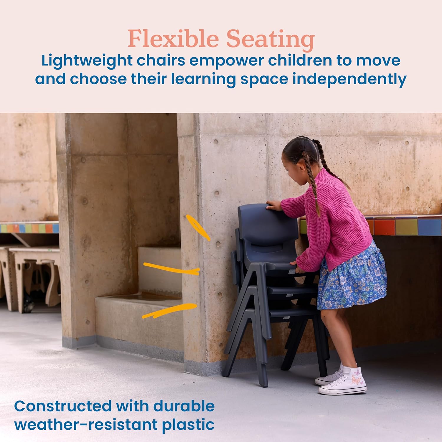 - Maintenance Free: Create a dynamic space indoors or outdoors for group activities or independent use; lightweight design allows for easy mobility between educational spaces