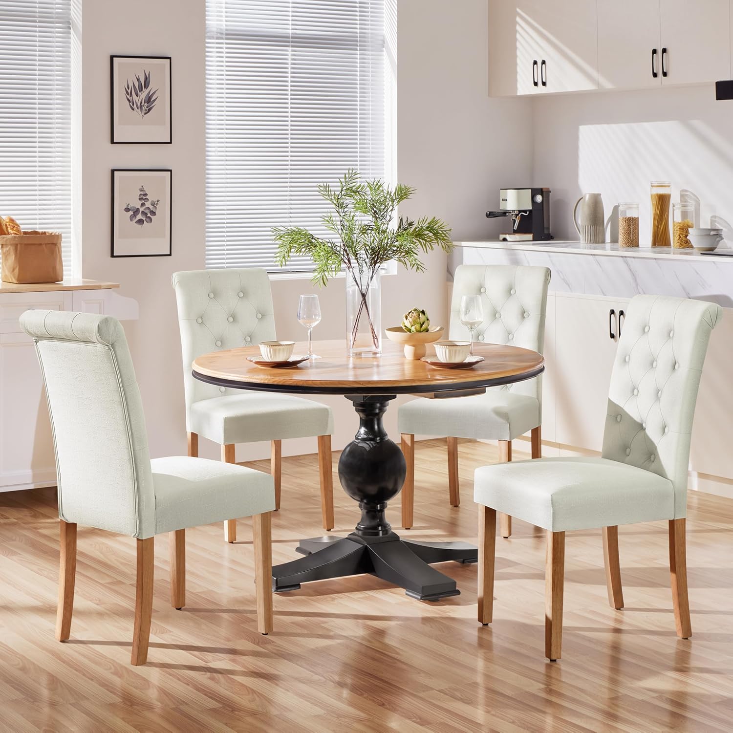 Yaheetech Dining Chairs Set of 4 Fabric Upholstered Dining Room Chairs with Button Tufted High Back and Solid Wood Legs for Kitchen/Living Room/Restaurant, Modern Style, Beige