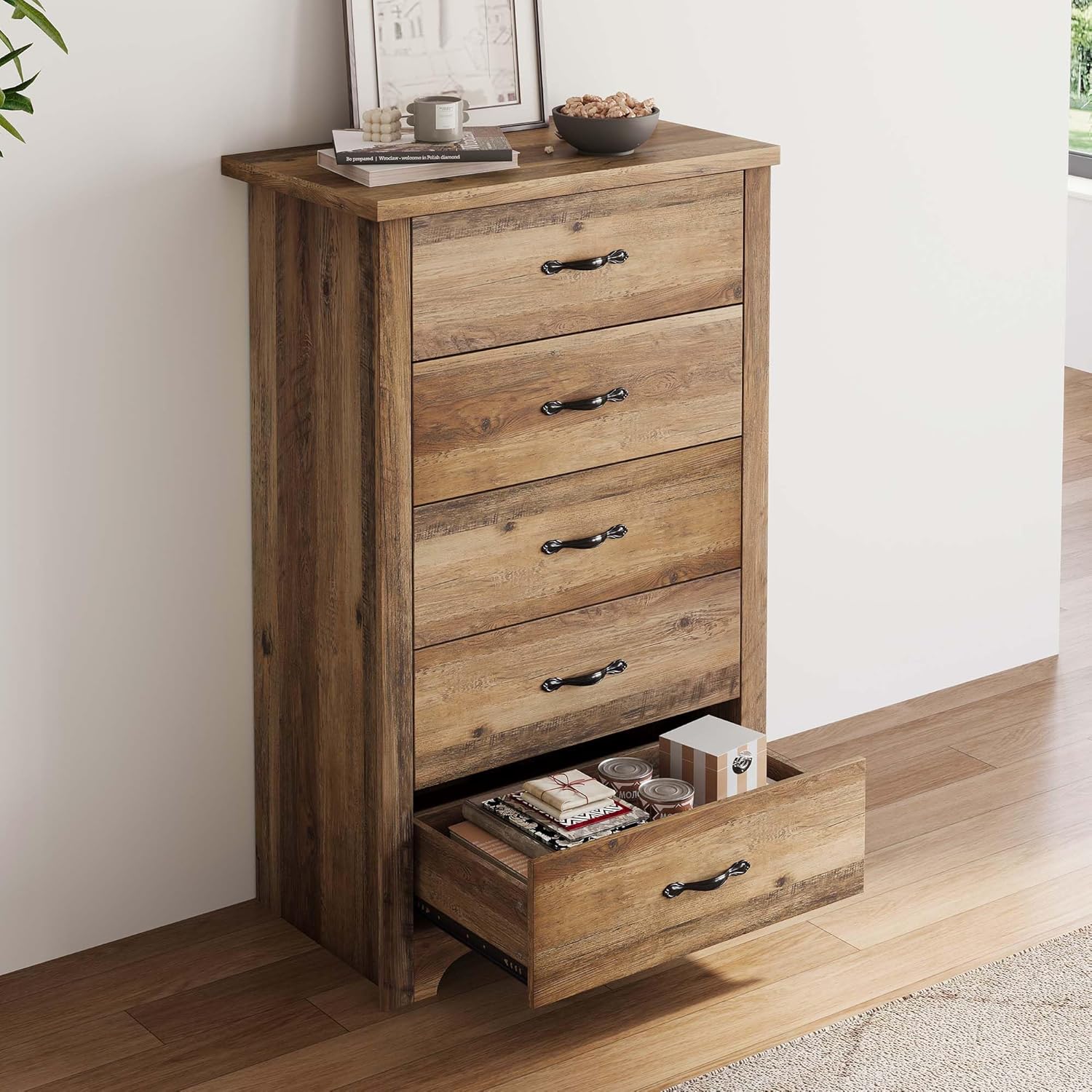 LINSY HOME 5 Drawers Dresser for Bedroom, Wood Bedroom Dresser Modern Drawer Chest, 5 Chest of Drawer, Tall Dresser for Closet, Dressers Organizer for Living Room, Closet, Hallway, Nursery