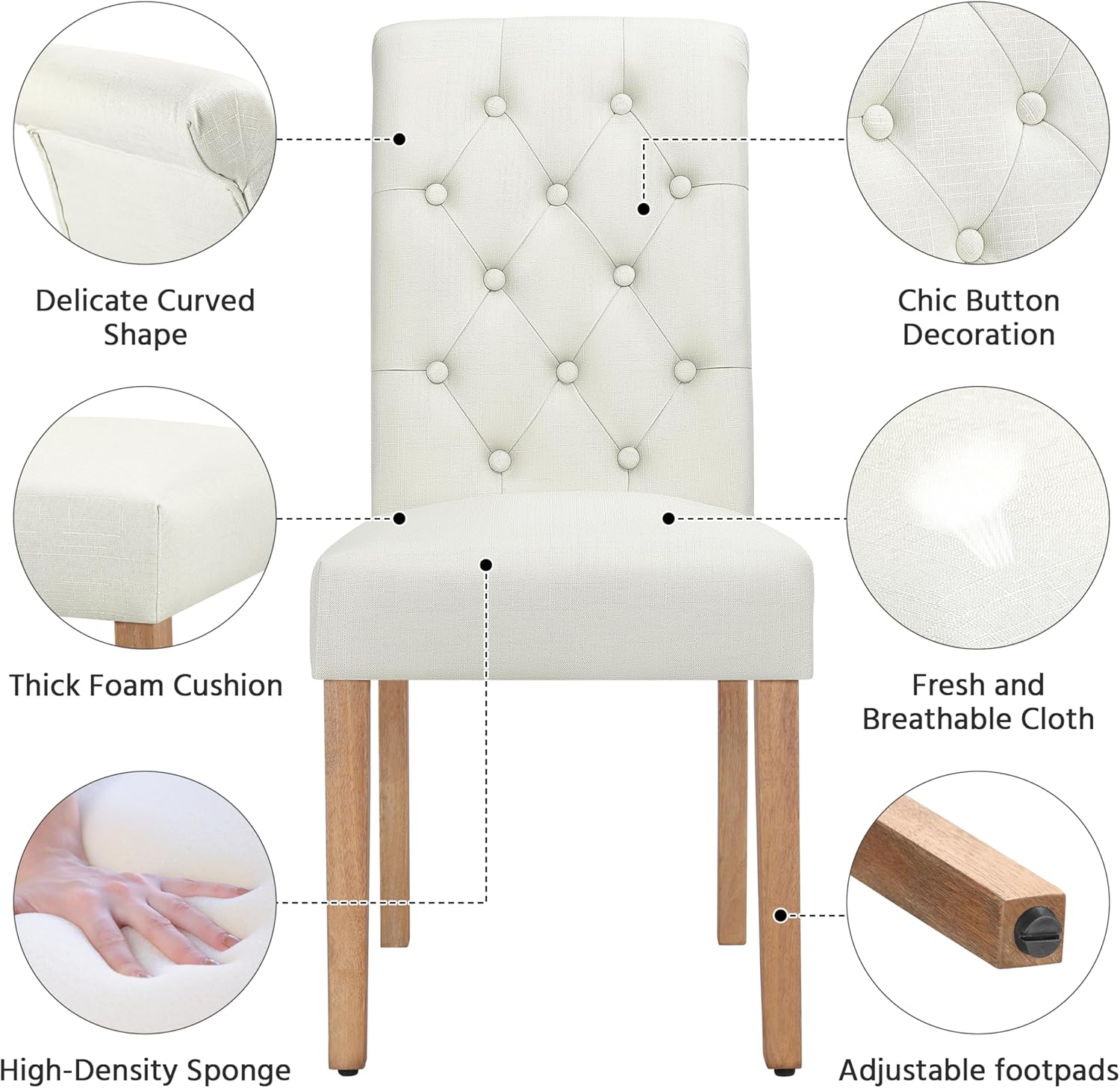 - Stylish Design: The backrest of these kitchen chairs is padded and button-tufted, adding a sense of elegance to your room, and the modern design is compatible seamlessly with any décor occasion