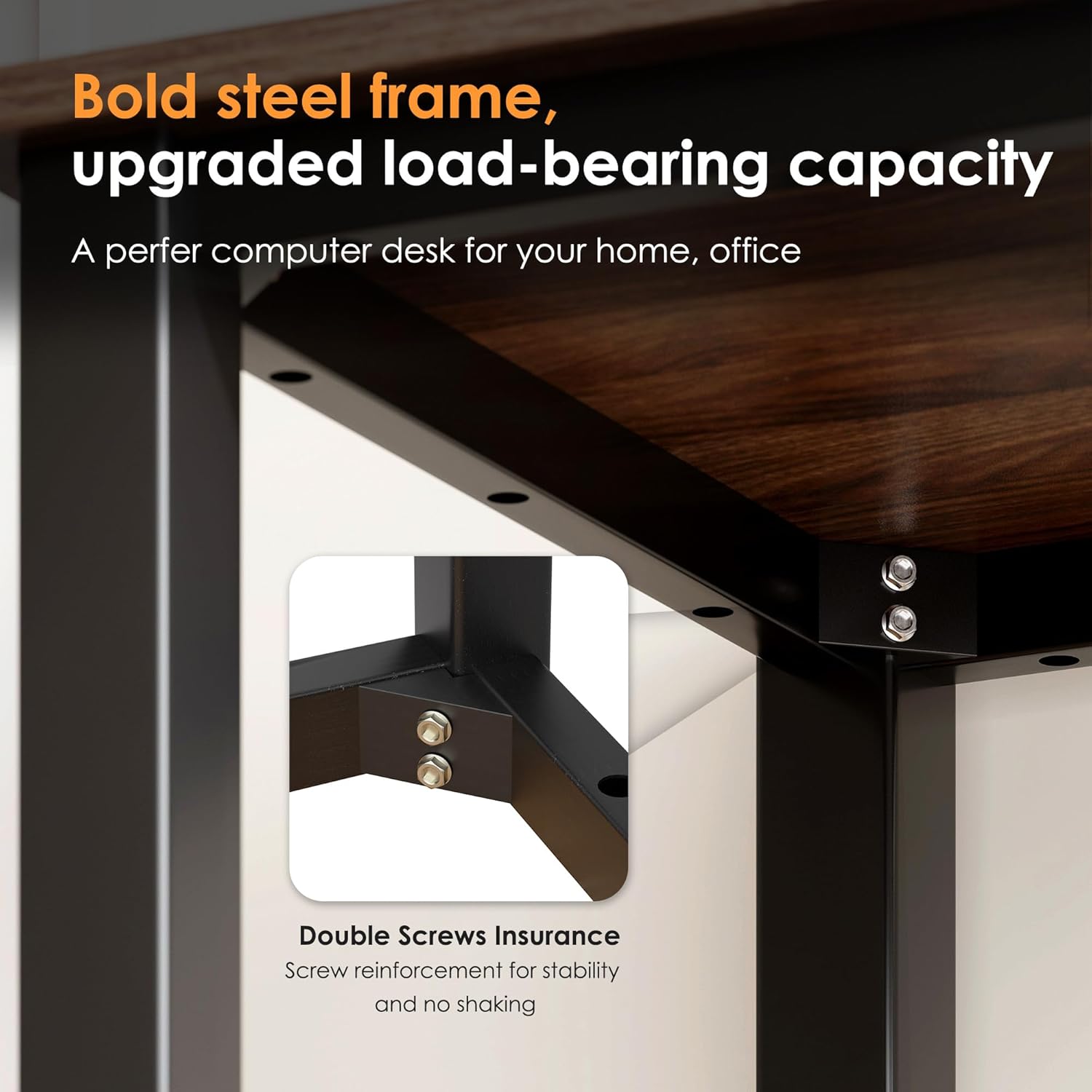 - High Stability : Thickened metal frame can provide more stable support. With adjustable foot pad, the desk can better fit and protect the floor.
