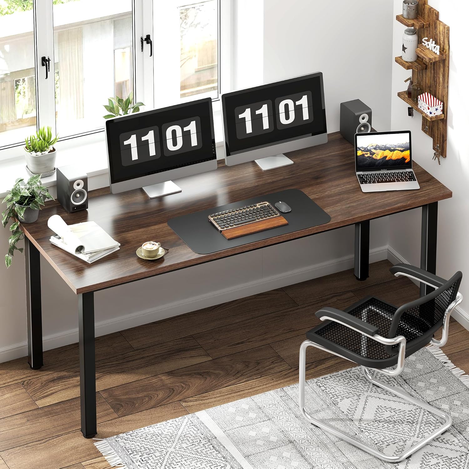 Need 63 Inch Large Computer Desk - Modern Simple Style Home Office Gaming Desk, Basic Writing Table for Study Student, Black Metal Frame, Walnut