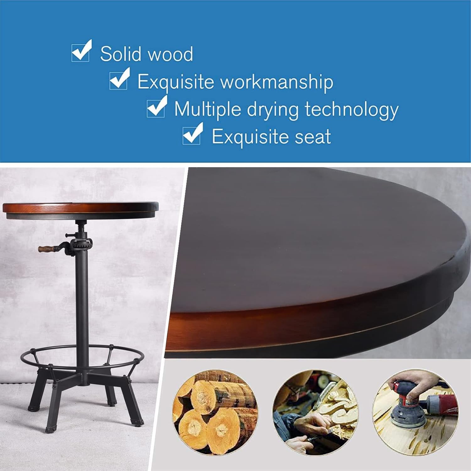 - Size of Wood(Approx.):23.63 Inch x 1.2 Inch(Dia.xThickness);Adjustable Height:from 33.47 Inch to 39.37 Inch;Diameter of Base:21.66 Inch. Any question of your order please tell us.-Join Us Now To Design A Industrial Home!