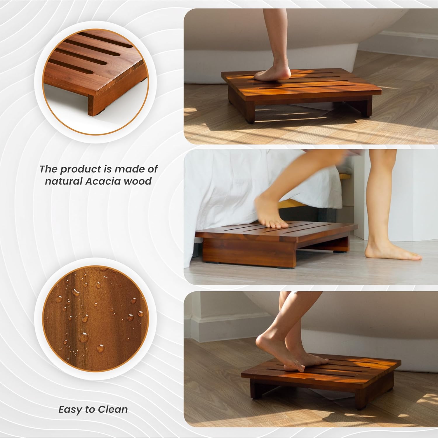 - Premium Natural Acacia Wood: Crafted from Acacia solid hardwood, this Step Stool enhances exceptional durability and longevity, perfect for children and aging adults. Acacia is a top-quality, sustainable wood that stands the test of time