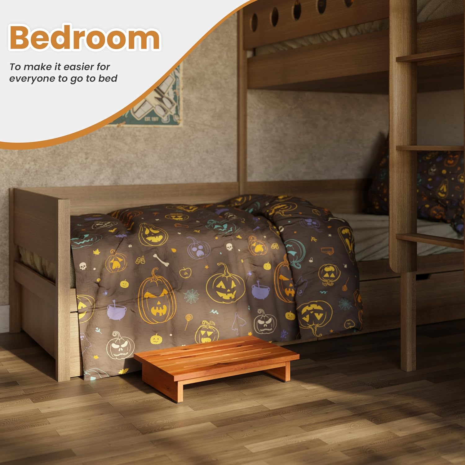 Holana 3.5in Height Wooden Step Stool for Adults (Fully Assembled) - 200 Lbs One Step Stools for High Bed Riser - Small Stepping Stool for Elderly, Seniors, Kid/Bathroom, Bed, Kitchen (Acacia Wood)