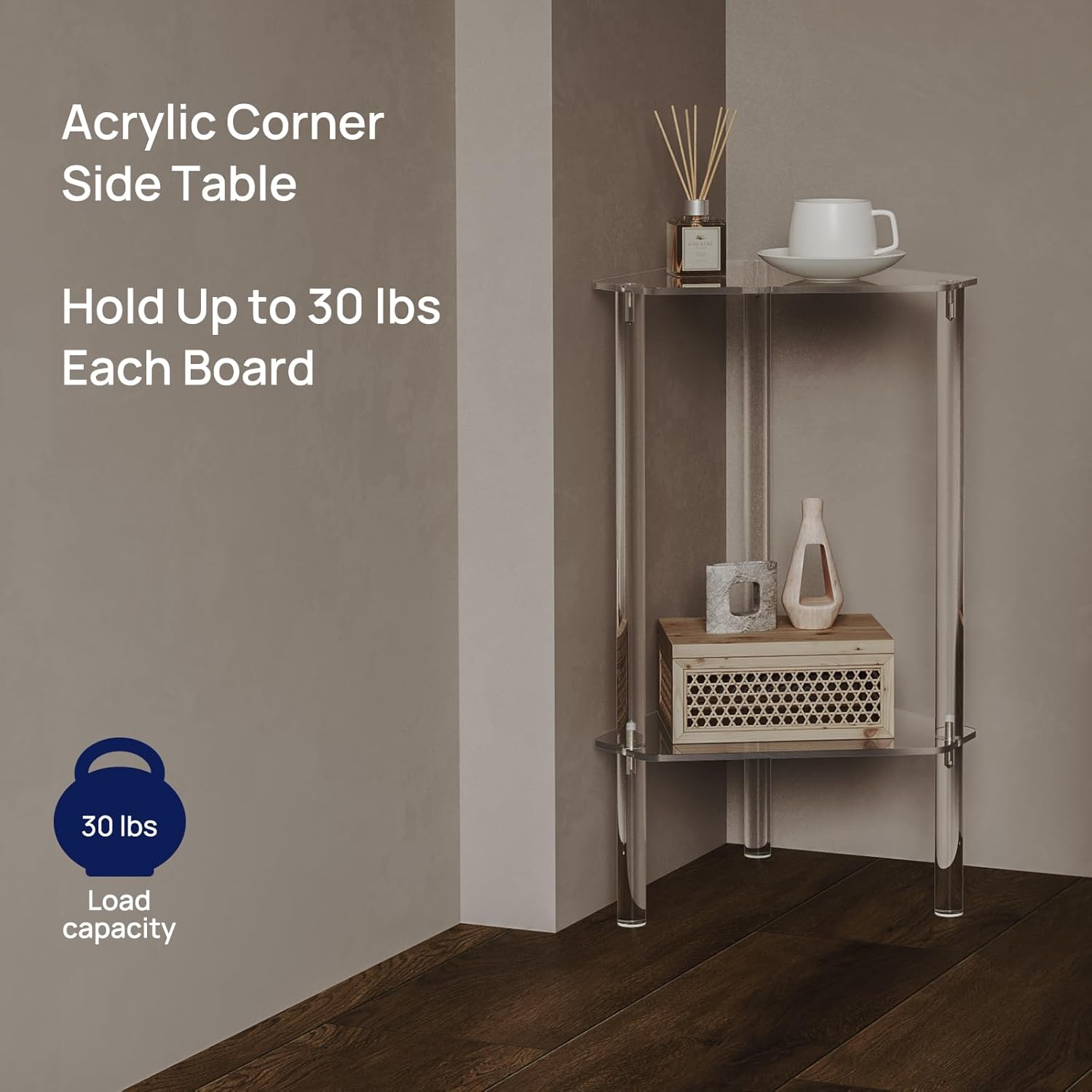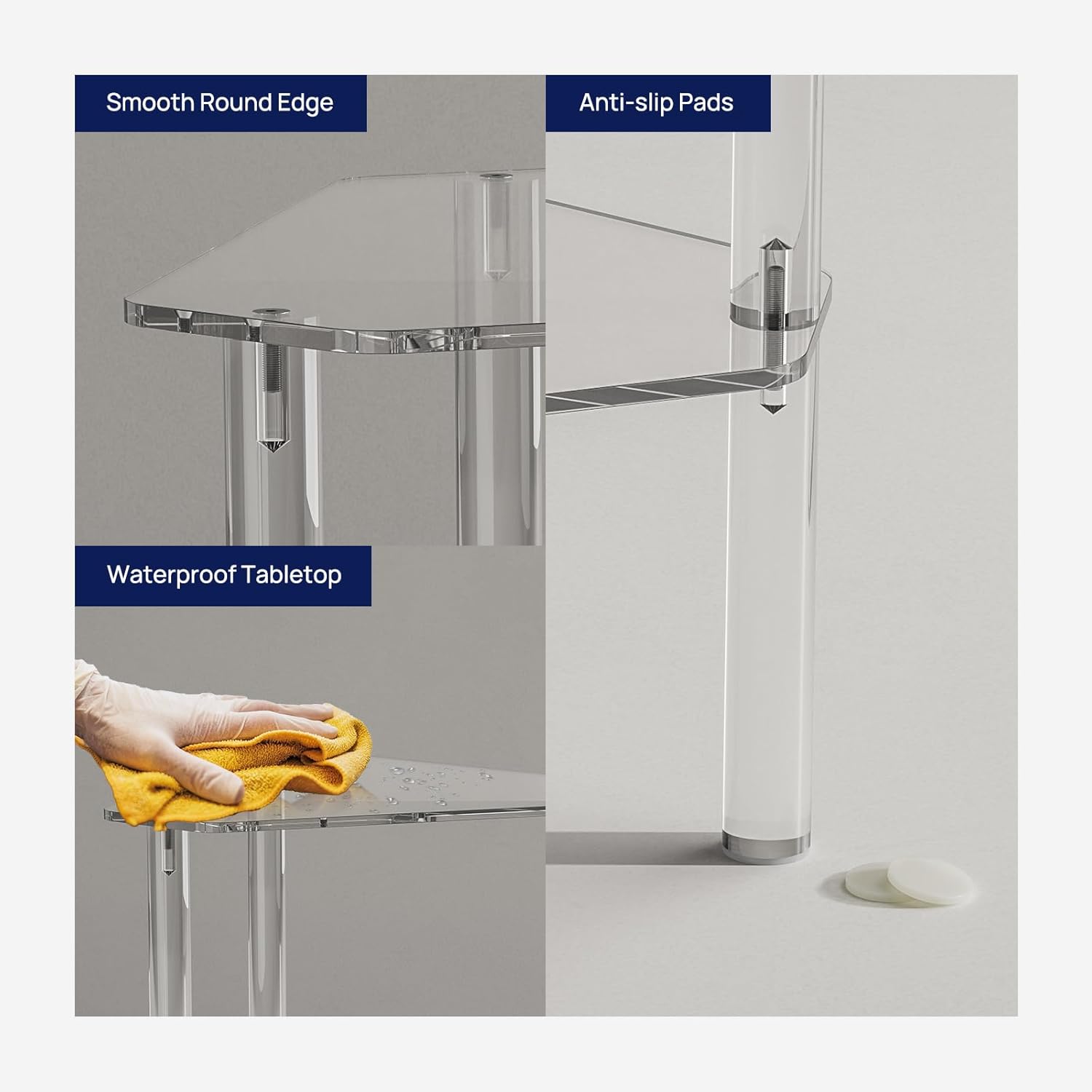 - Multifunctional Acrylic Furniture: Suitable for your living room, bedroom, bathroom or foyer. Used as a small end table, corner table, drink table, couch table, or as a decorative clear table.