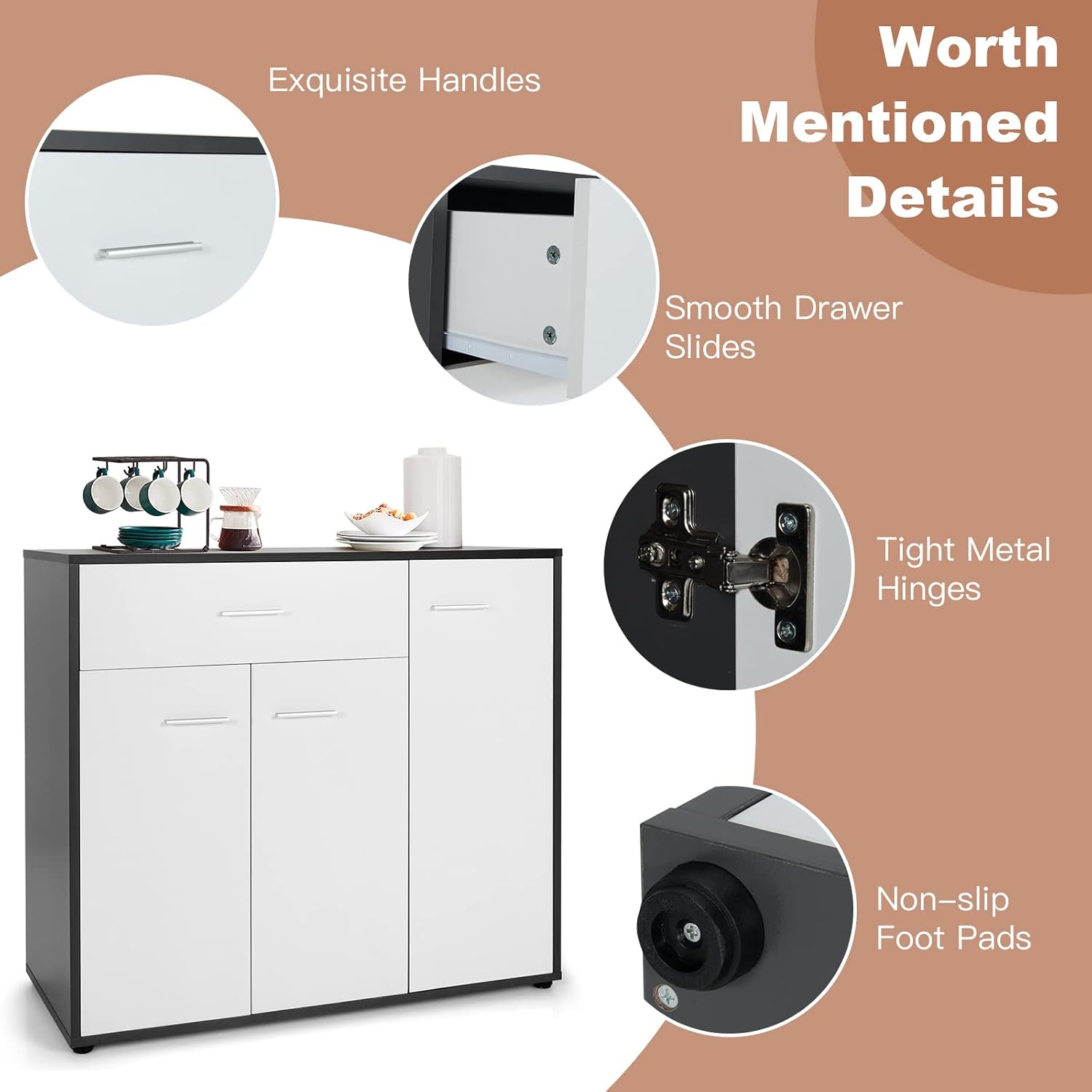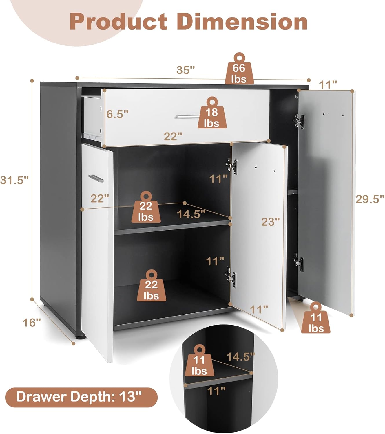- 【Large Space for Classified Storage】Designed with a double-door cabinet, a single door cabinet, and large and deep drawer, the storage cabinet can provide you enhanced convenience for classified storage and reduce dust coverage. You can put tableware, wine glasses, and necessities on the large tabletop with 66 lbs weight capacity.