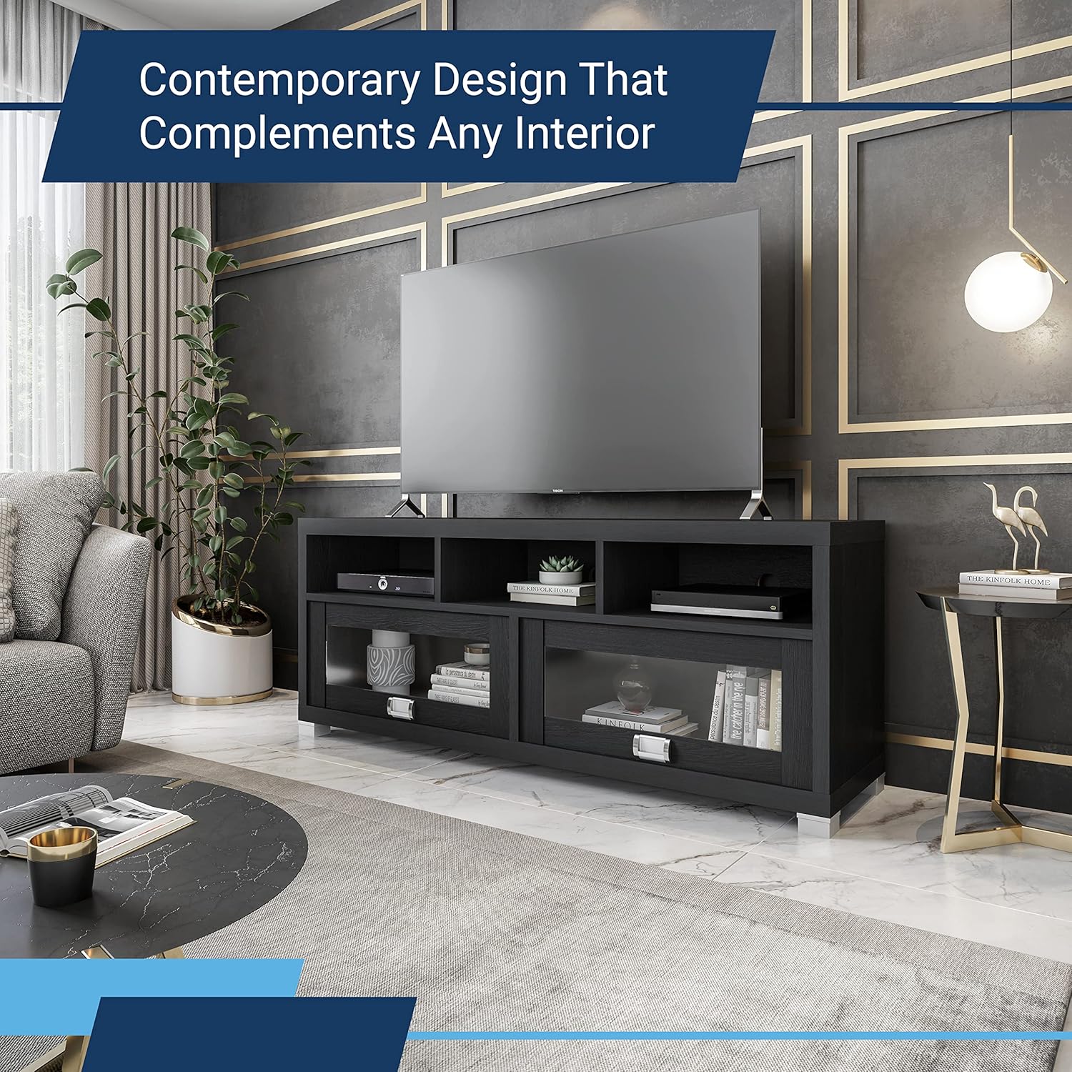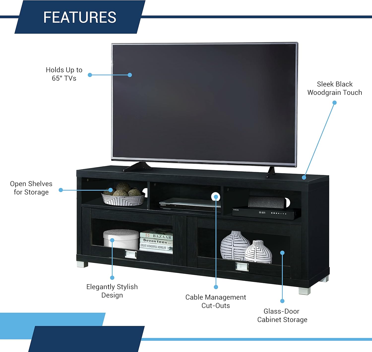 Techni Mobili TV Stand for 55+ Inch TV - Durbin Entertainment Center for 65 Inch TV - Living Room & Media Furniture with Glass Storage Cabinet Drawers, Shelves, & Cable Management Opening - Black