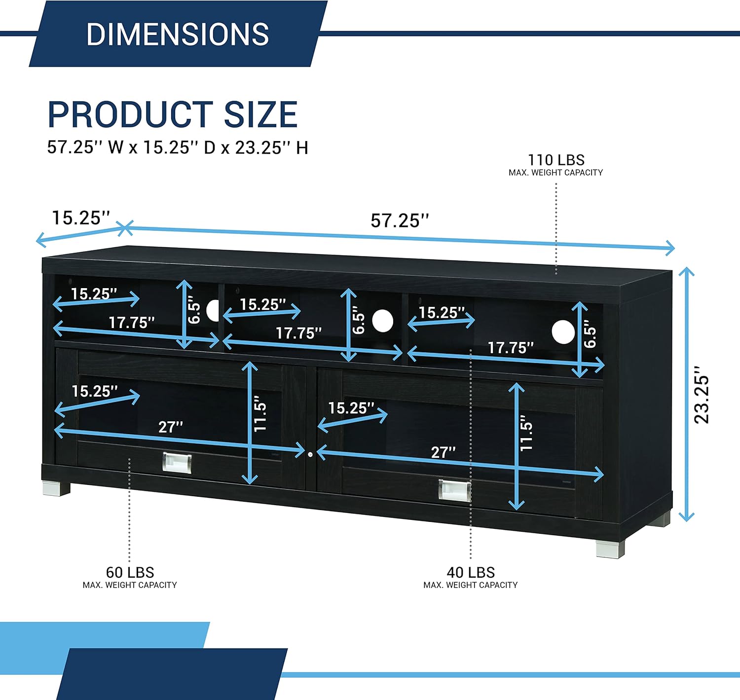 - Secure Your TV & Media Furniture: End your search for a universal TV stand with storage with our TV console table made with heavy-duty compressed wood, engineered to have a solid structure that gives you a media cabinet with higher weight capacity and durability.