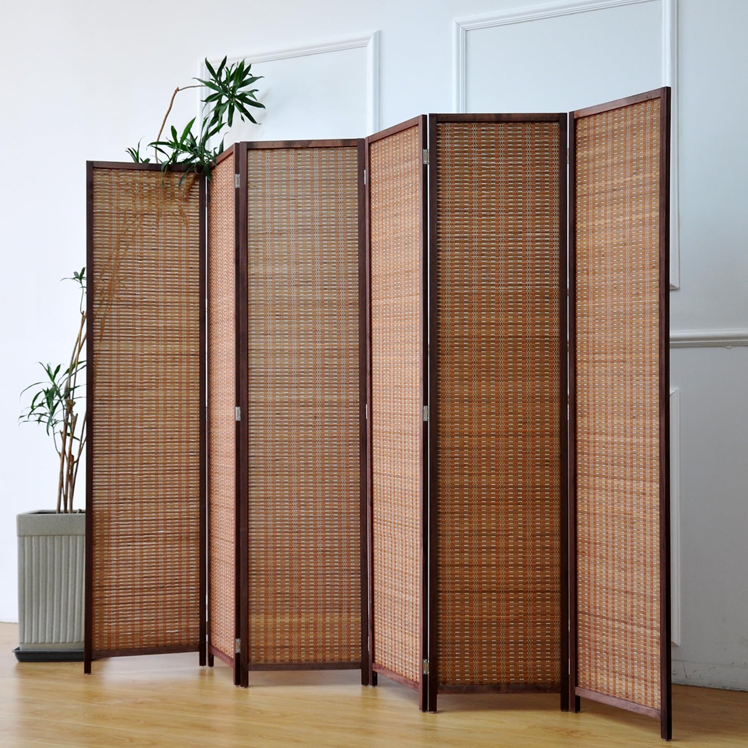 6 Panel Room Divider and Folding Screen Room Divider,Bamboo Room Divider for Room Separation,67" H x 92.1" W