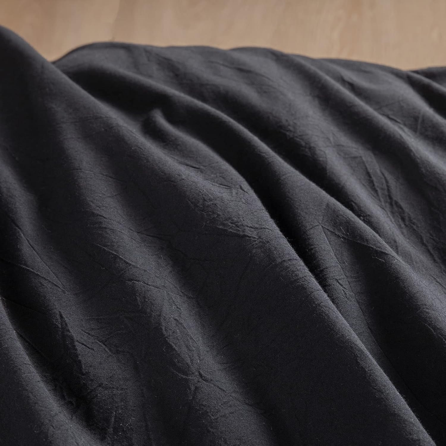 BESTOUCH Duvet Cover Set 100% Washed Cotton Linen Feel Super Soft Comfortable Chic Lightweight 3 PCs Home Bedding Set Solid Deep Black King
