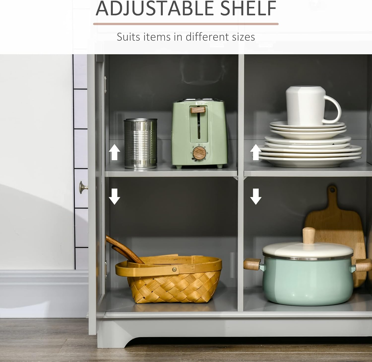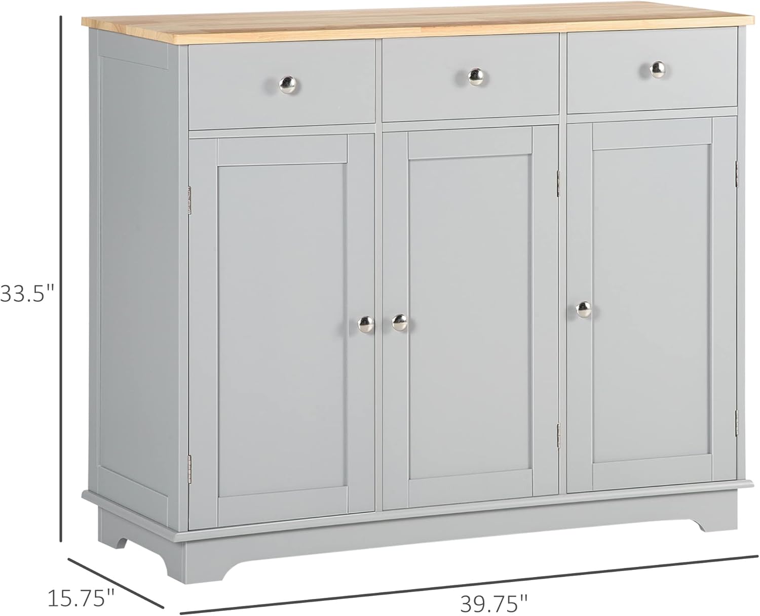 HOMCOM Sideboard with Solid Wood Countertop, Modern Kitchen Storage Cabinet, Coffee Bar Cabinet with 3 Drawers, Doors and Adjustable Shelf, Gray