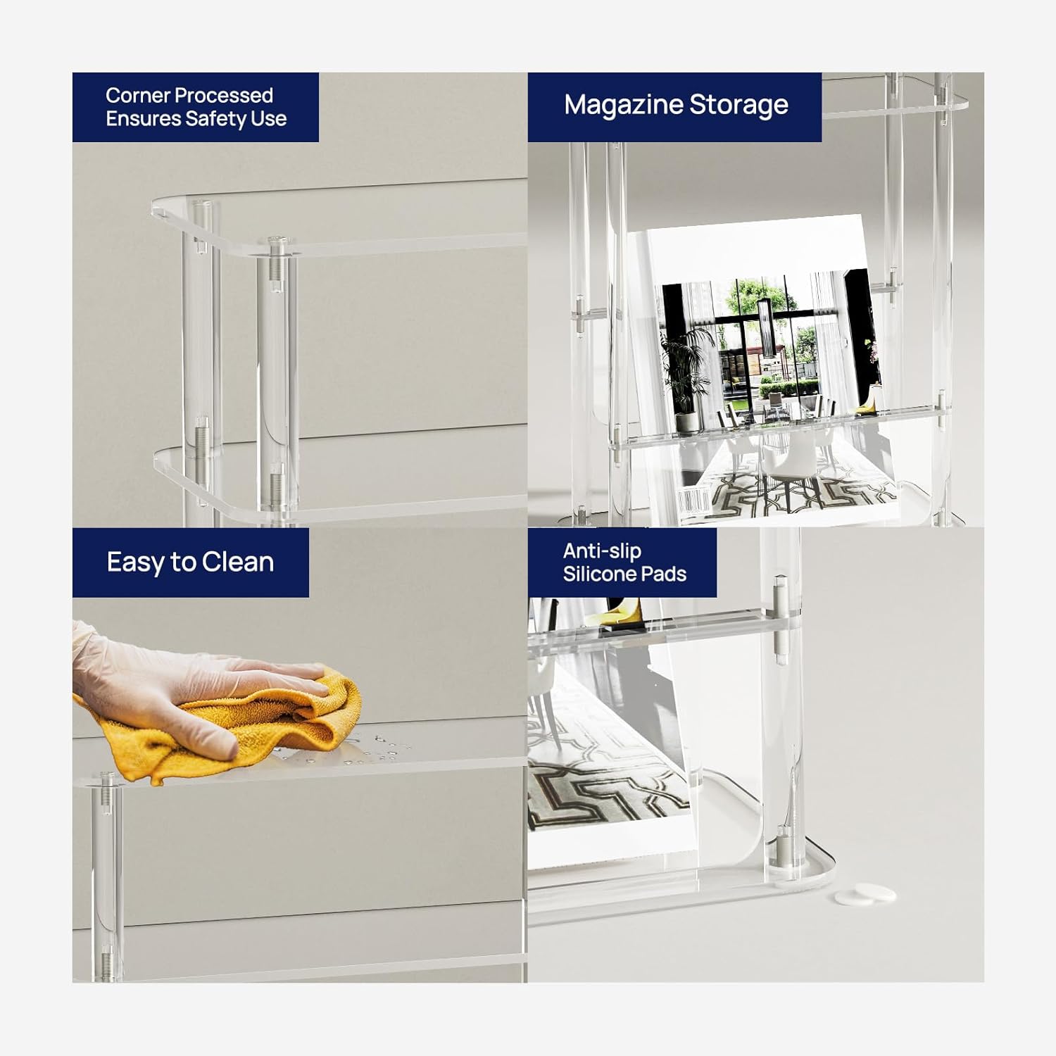- Multifunctional Acrylic Table: Used as a skinny side table, magazine stand, small drink table, small bedside table, couch table. Suitable as a decorative table for your living room, bedroom, bathroom, or foyer.