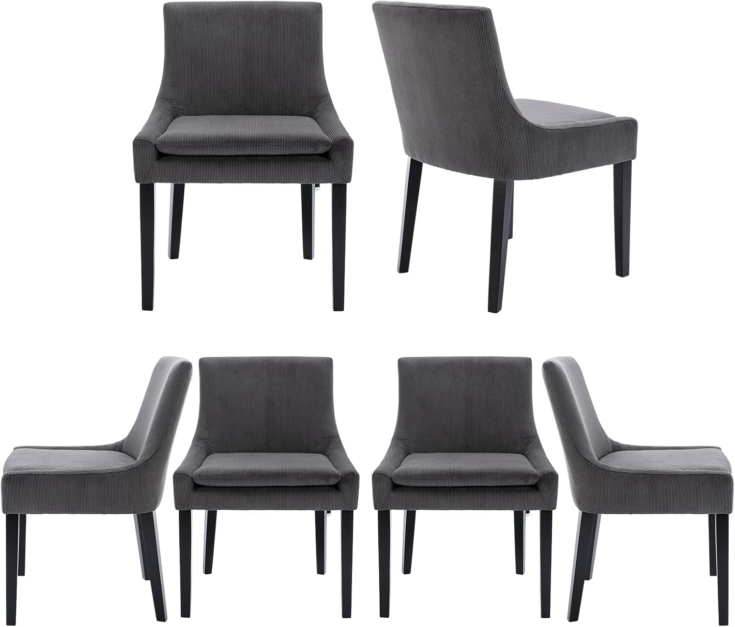 COLAMY Modern Dining Chairs Set of 6, Upholstered Corduroy Accent Side Leisure Chairs with Mid Back and Wood Legs for Living Room/Dining Room-Grey