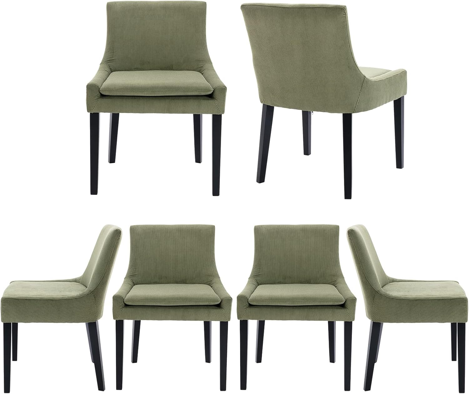 COLAMY Modern Dining Chairs Set of 6, Upholstered Corduroy Accent Side Chairs with Mid Back and Wood Legs for Living Room/Dining Room- Light Green