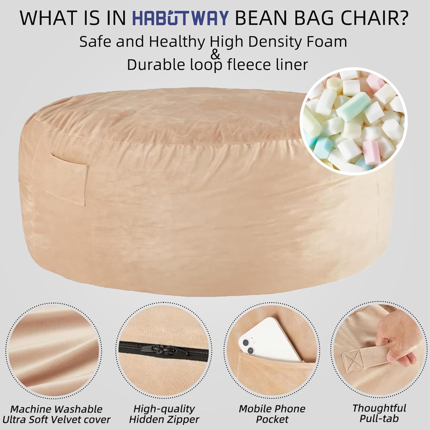 - BEAN BAG CHAIRS FOR ADULTS - With diameters: 56"*36", HABUTWAY adult bean bag chair is suitable for everyone. The bean bag chair is large enough for people to sit comfortably, and enjoy there chill time.