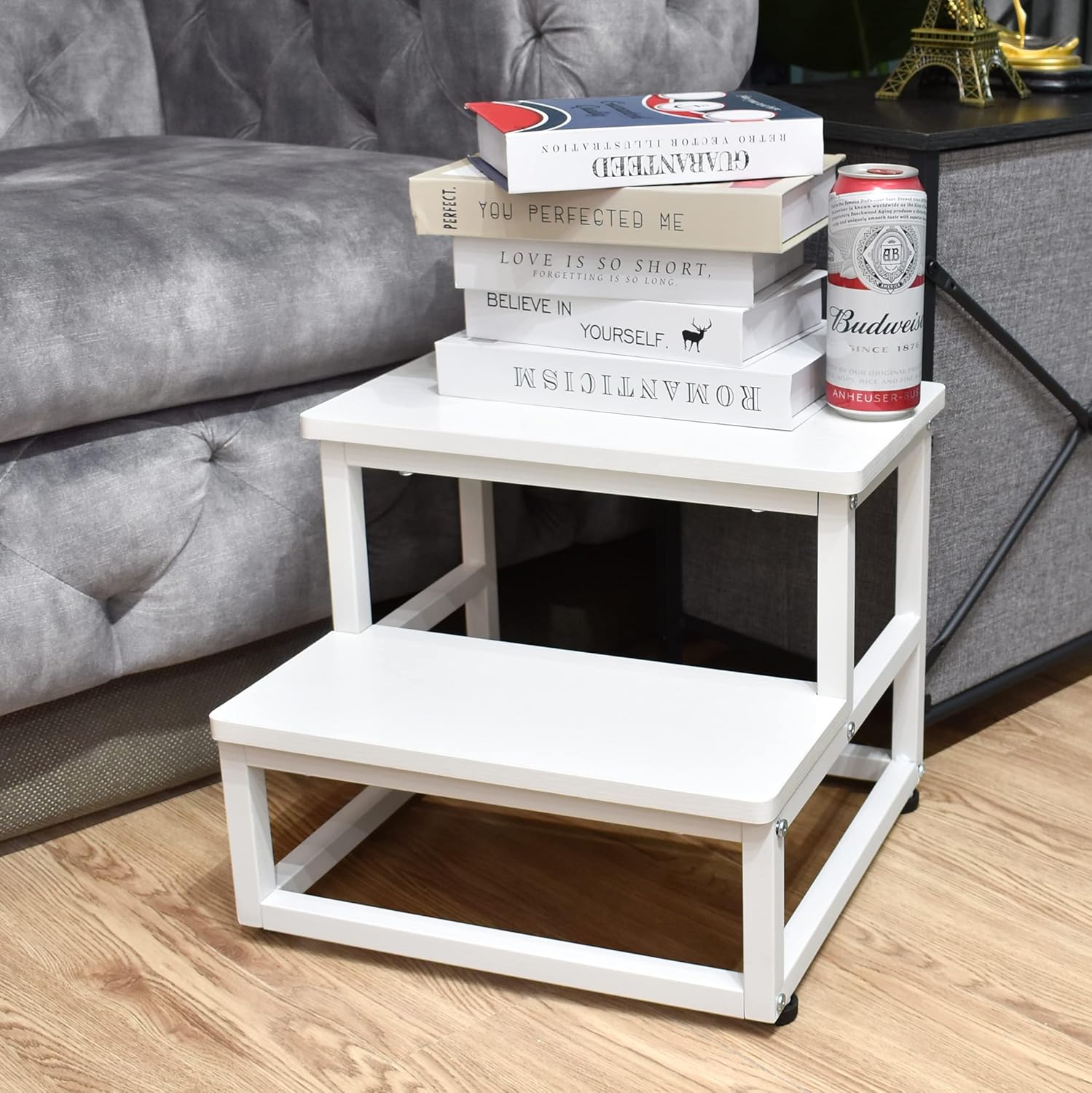 - MULTIPURPOSE - This bed step stool is suitable for both adults and kids at various scenes. You can use it at bedside or kitchen and living room, to reach things in the high cabinet. Kids can wash hands and brush teeth at sink side with this 2 step stool. It also can be a potty training stool, a plant stand, a dog steps, or a small shoes rack