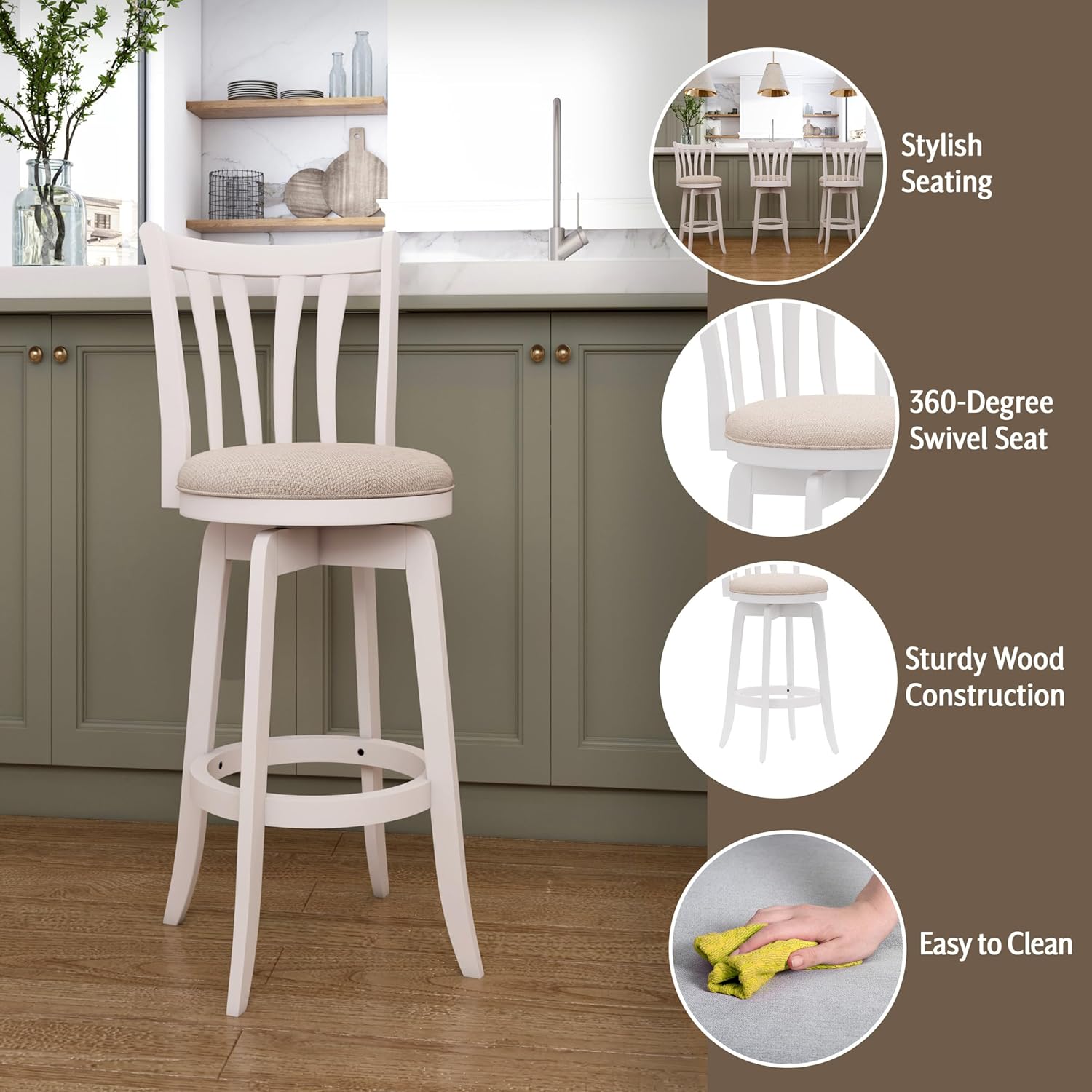 - 360-degree swivel: Transitional wood swivel stool with a curved slat back design – a stylish addition to any counter, bar or high table. The round swivel seat allows for easy movement, keeping you in the heart of the conversation – perfect for parties or casual gatherings.