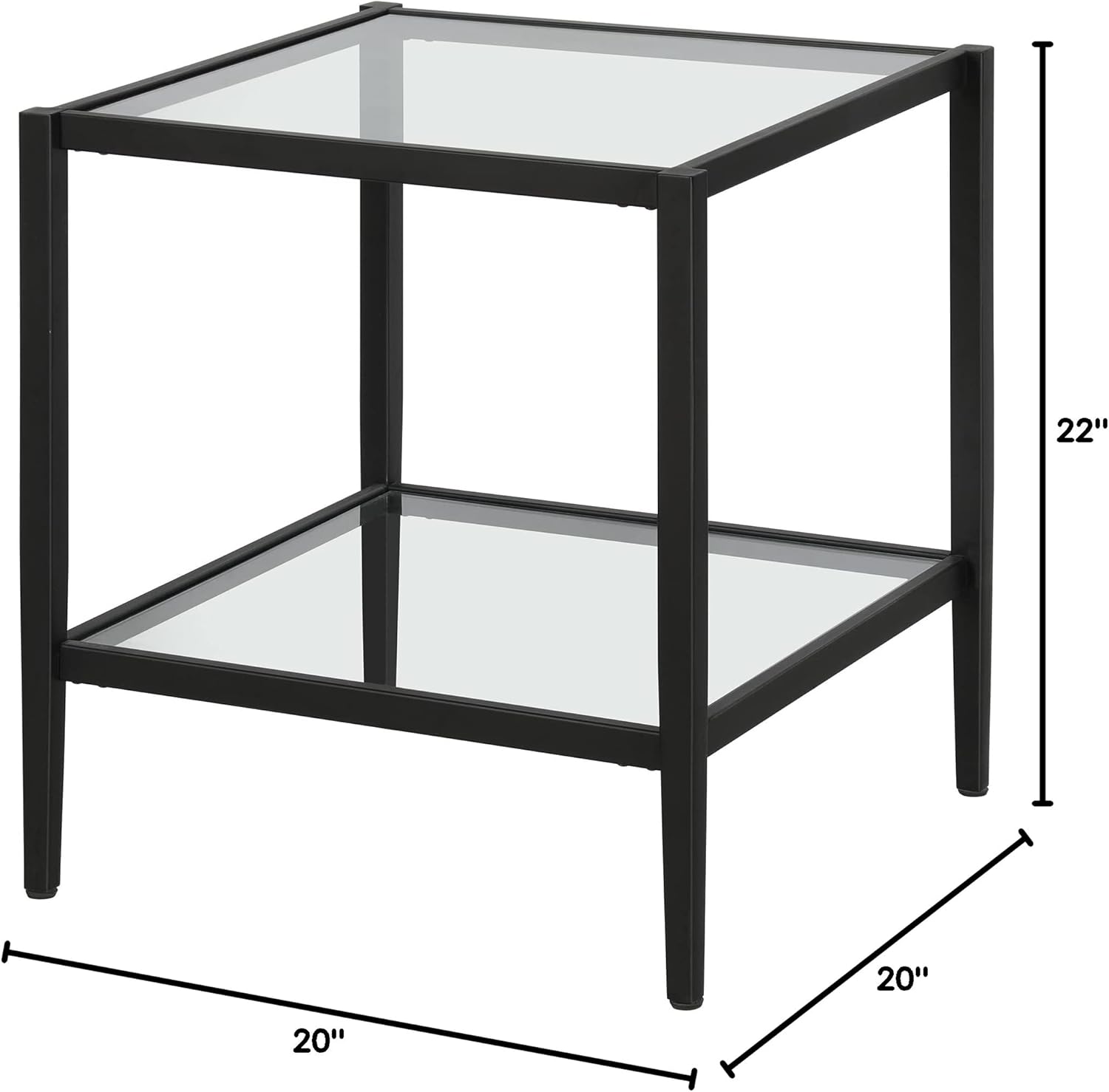 Henn&Hart 20" Wide Square Side Table with Glass Shelf in Blackened Bronze, Table for Living Room, Bedroom
