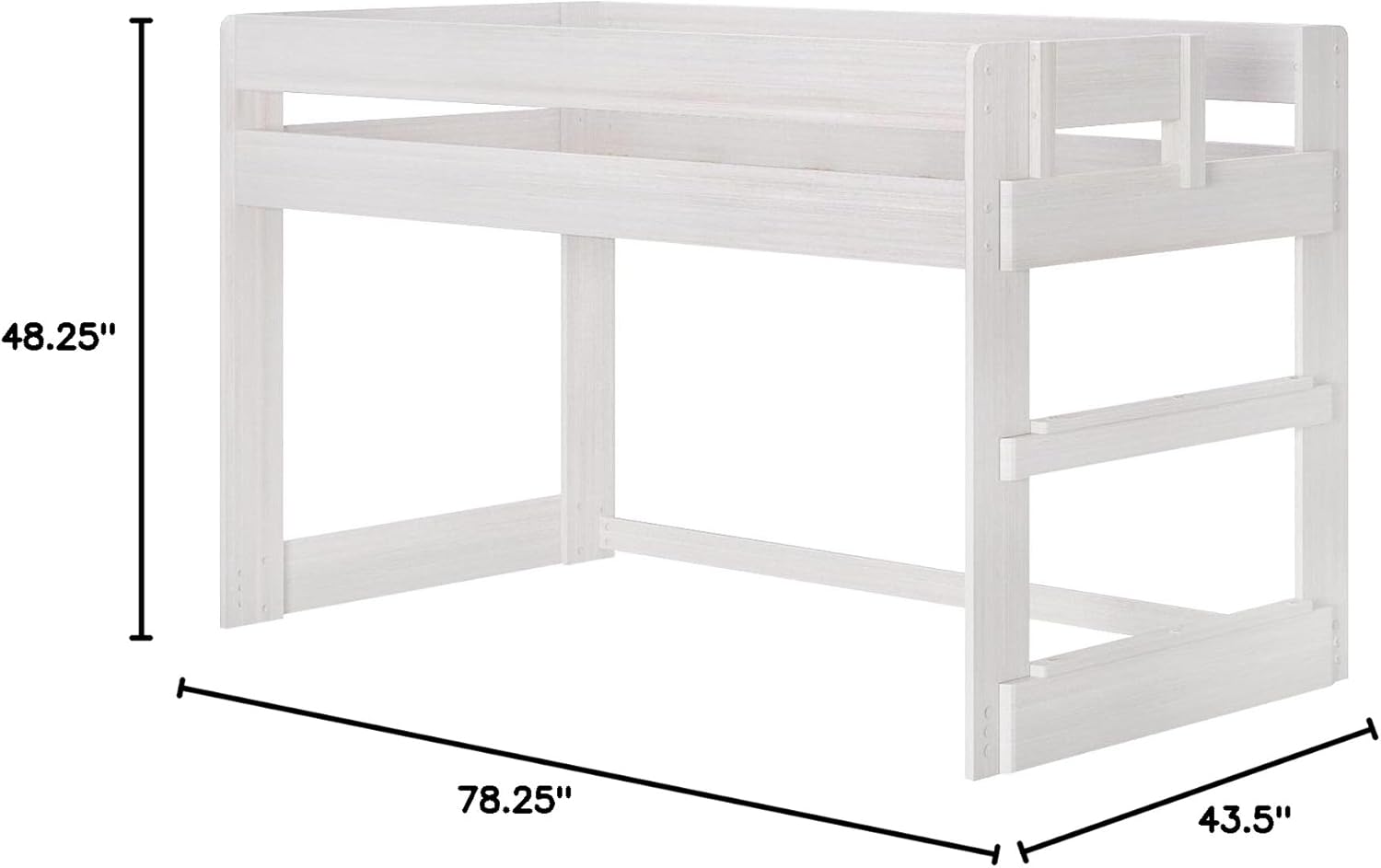Max & Lily Modern Farmhouse Low Loft Bed, Twin Bed Frame For Kids, White Wash