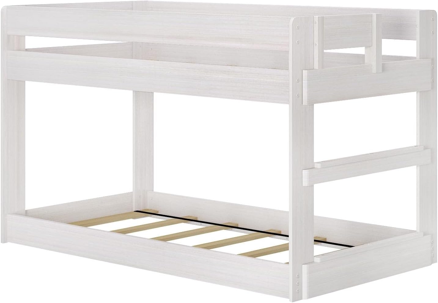 Max & Lily Modern Farmhouse Low Bunk Bed, Twin-Over-Twin Bed Frame For Kids, White Wash