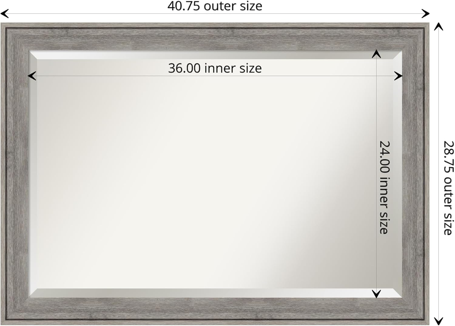 Amanti Art Grey Wall Mirror 29x41 Regis Barnwood Grey Rectangle Bathroom Mirror for Wall Decor Living Room, Large Country Rustic Wood Frame, Hangs Horizonally and Vertically, Bathroom Decor, Beveled