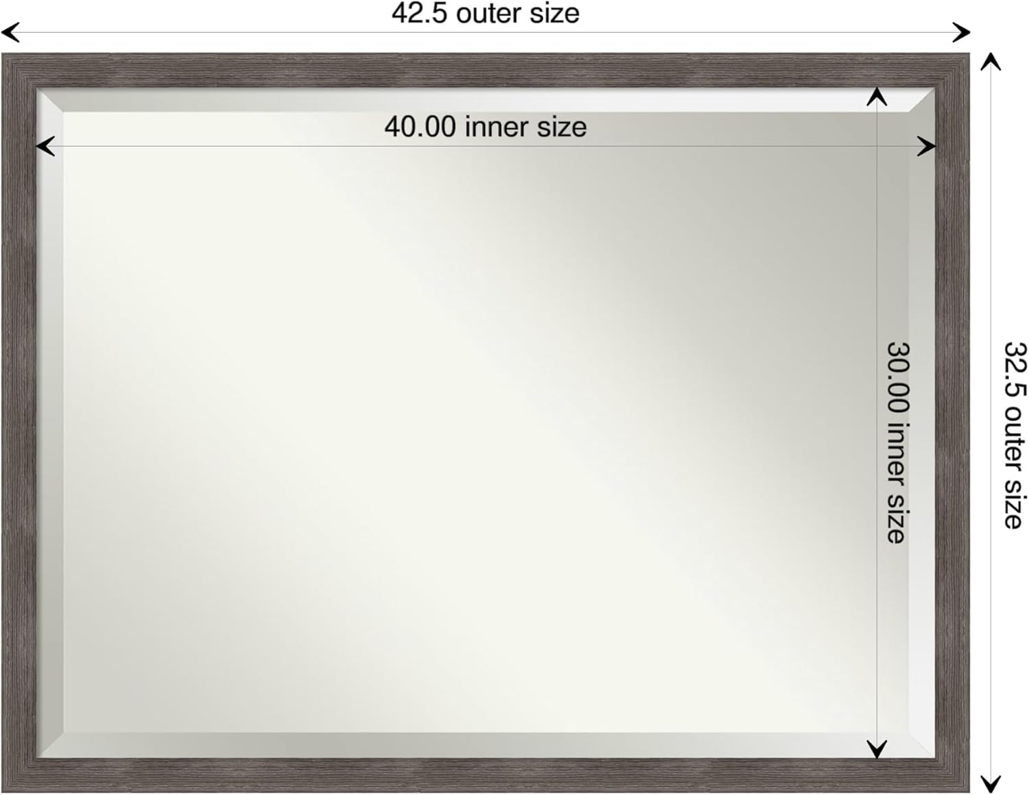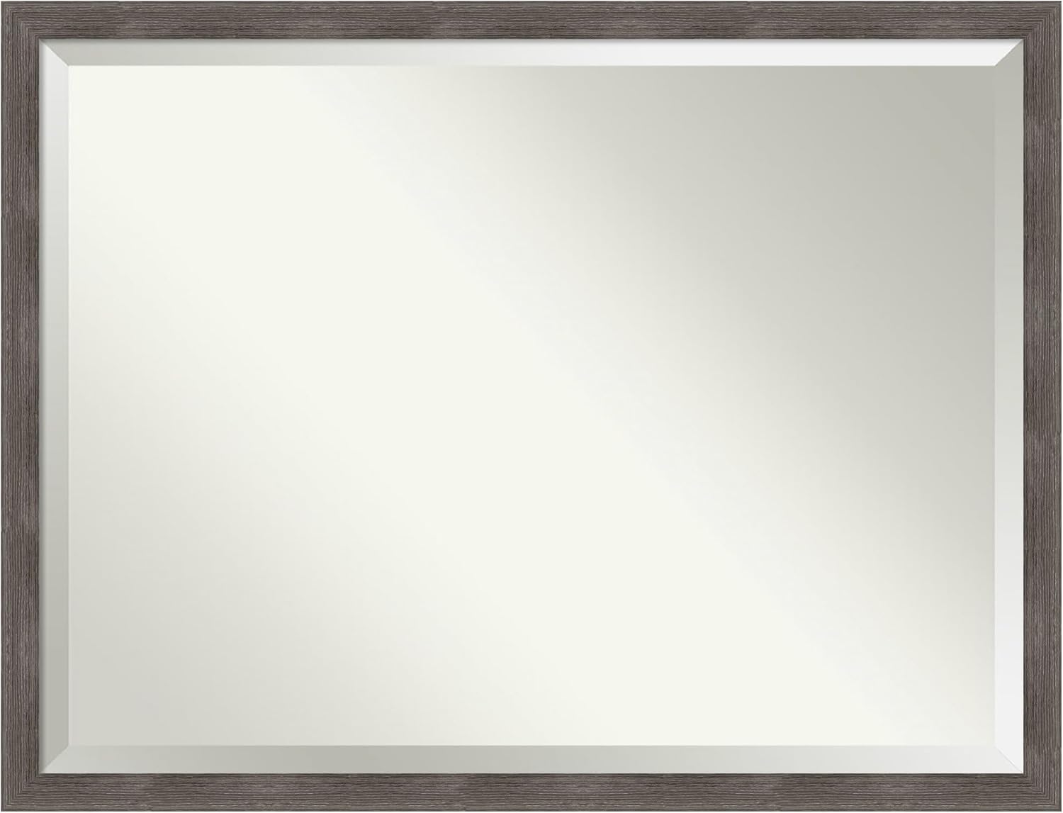 Amanti Art Grey Wall Mirror 33x43 Pinstripe Lead Grey Rectangle Bathroom Mirror for Wall Decor Living Room, X-Large Modern Wood Frame, Hangs Horizonally and Vertically, Bathroom Decor, Beveled Edge