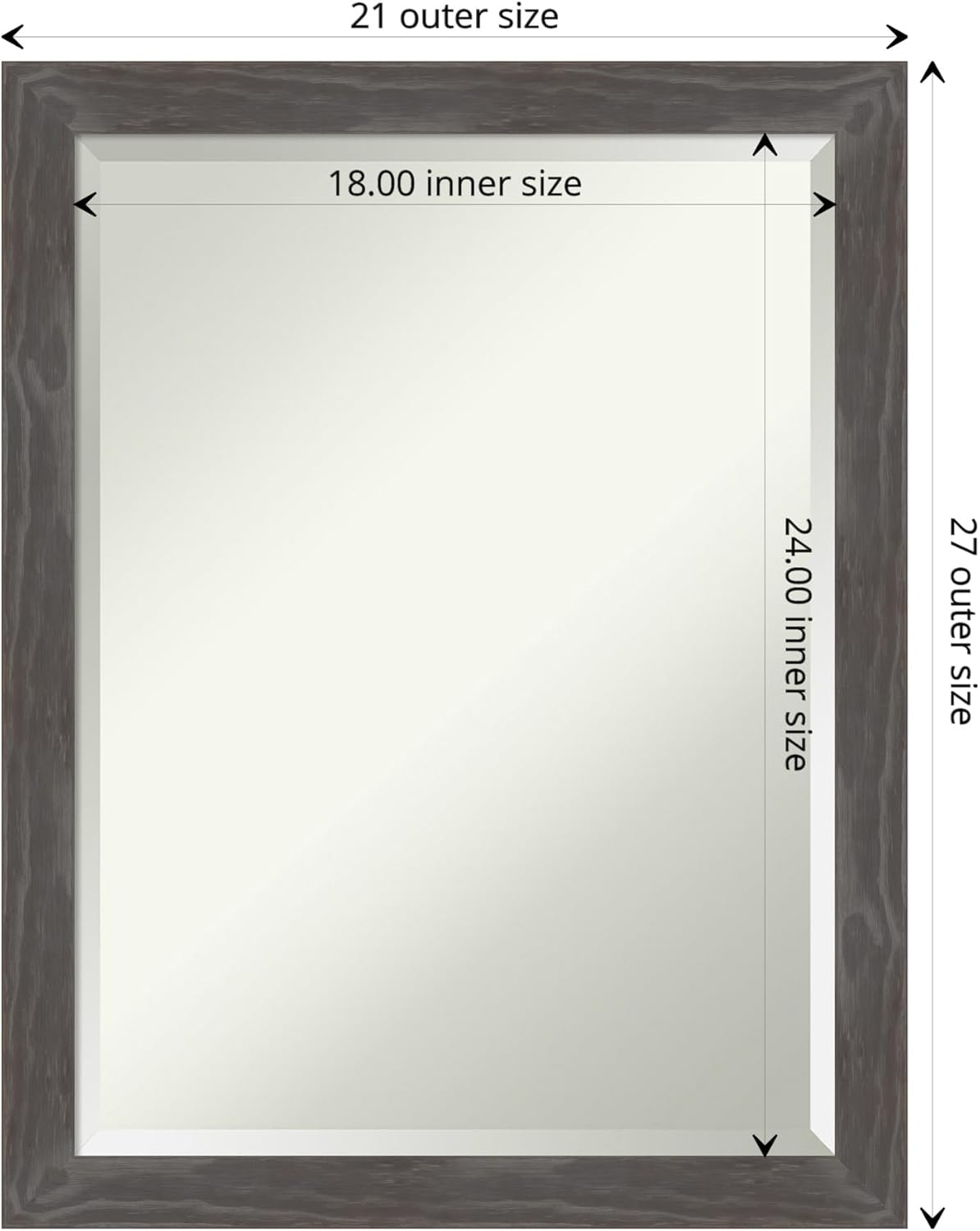 Amanti Art Grey Wall Mirror 27x21 Woodridge Rustic Grey Rectangle Bathroom Mirror for Wall Decor Living Room, Medium Country Rustic Wood Frame, Hangs Horizonally and Vertically, Bathroom Decor,