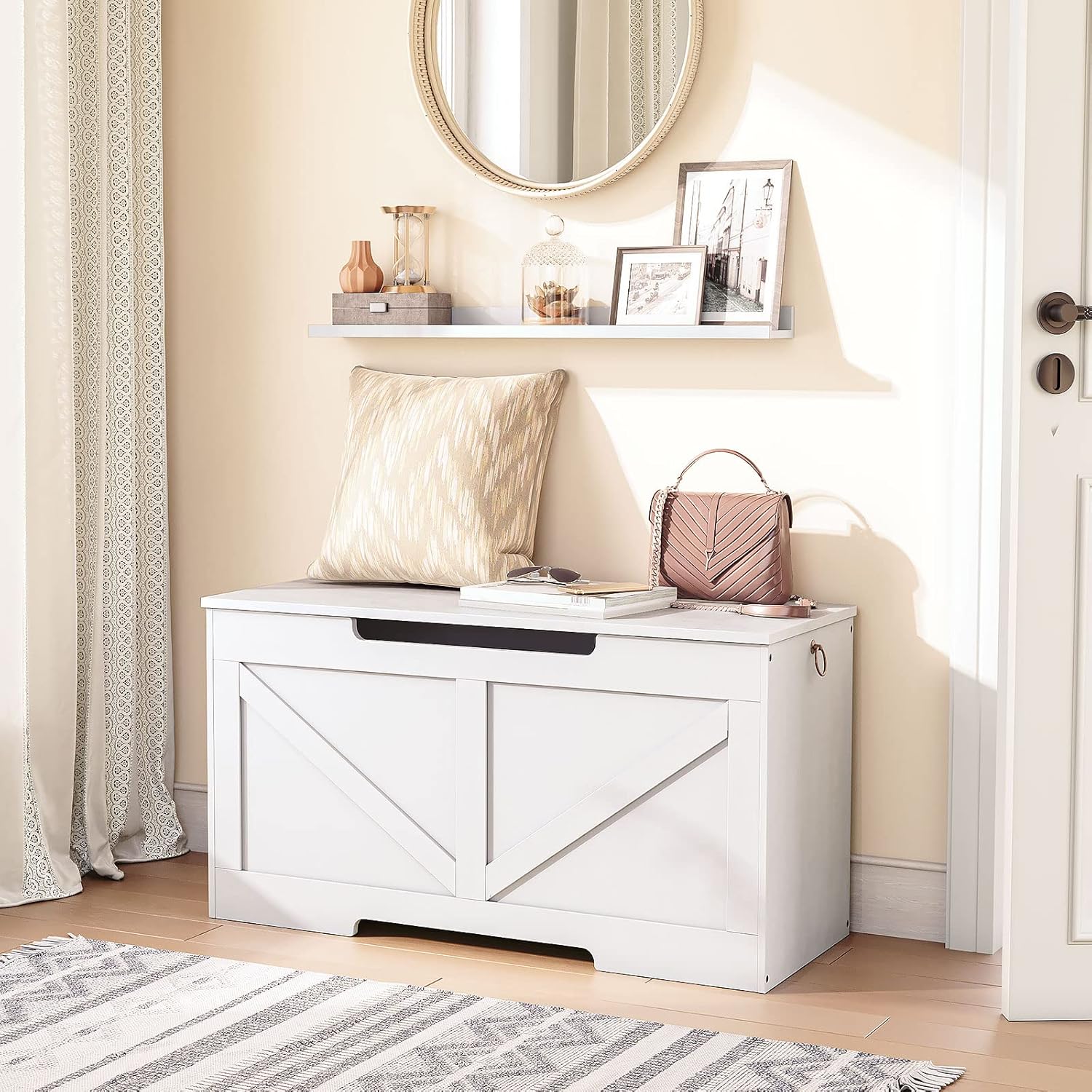 HOOBRO Storage Bench, 29.5” Retro Wooden Storage Chest with U-Shaped Cut-Out Pull, Safety Hinge, Supports 220 lb and Easy Assembly for Toy Box Organizer (White) WT77CW01