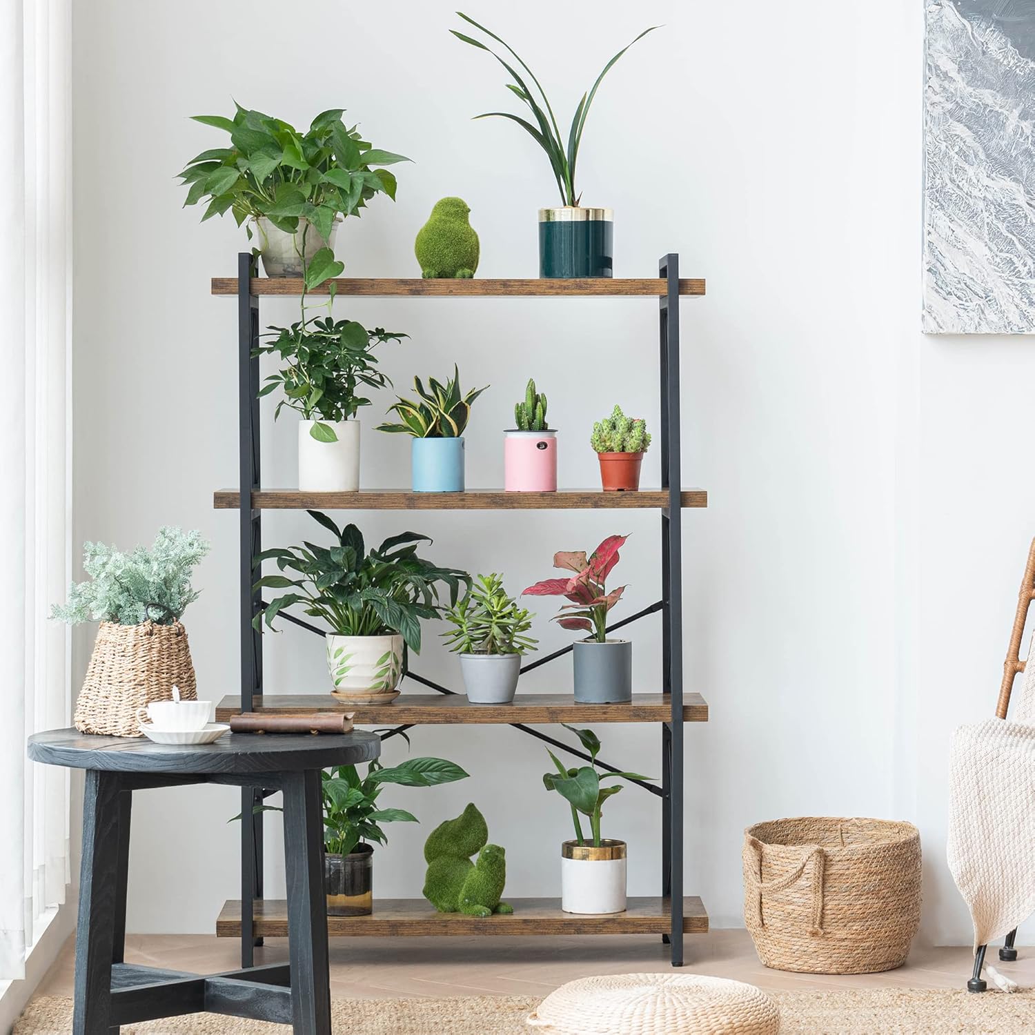 HCHQHS Bookshelf, 4-Tier Industrial Bookcase, Rustic Open Book Shelf, Freestanding Tall Bookshelves with Metal Frame