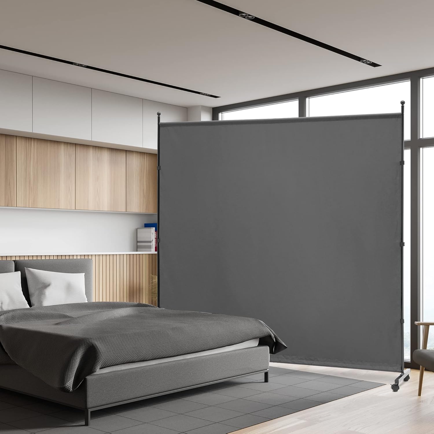 6FT Single Panel Room Divider with Wheels,Rolling Fabric Room Dividers for Partition Privacy Screens,Freestanding Wall Divider for Home Office,Restaurant,Hospital(Grey)