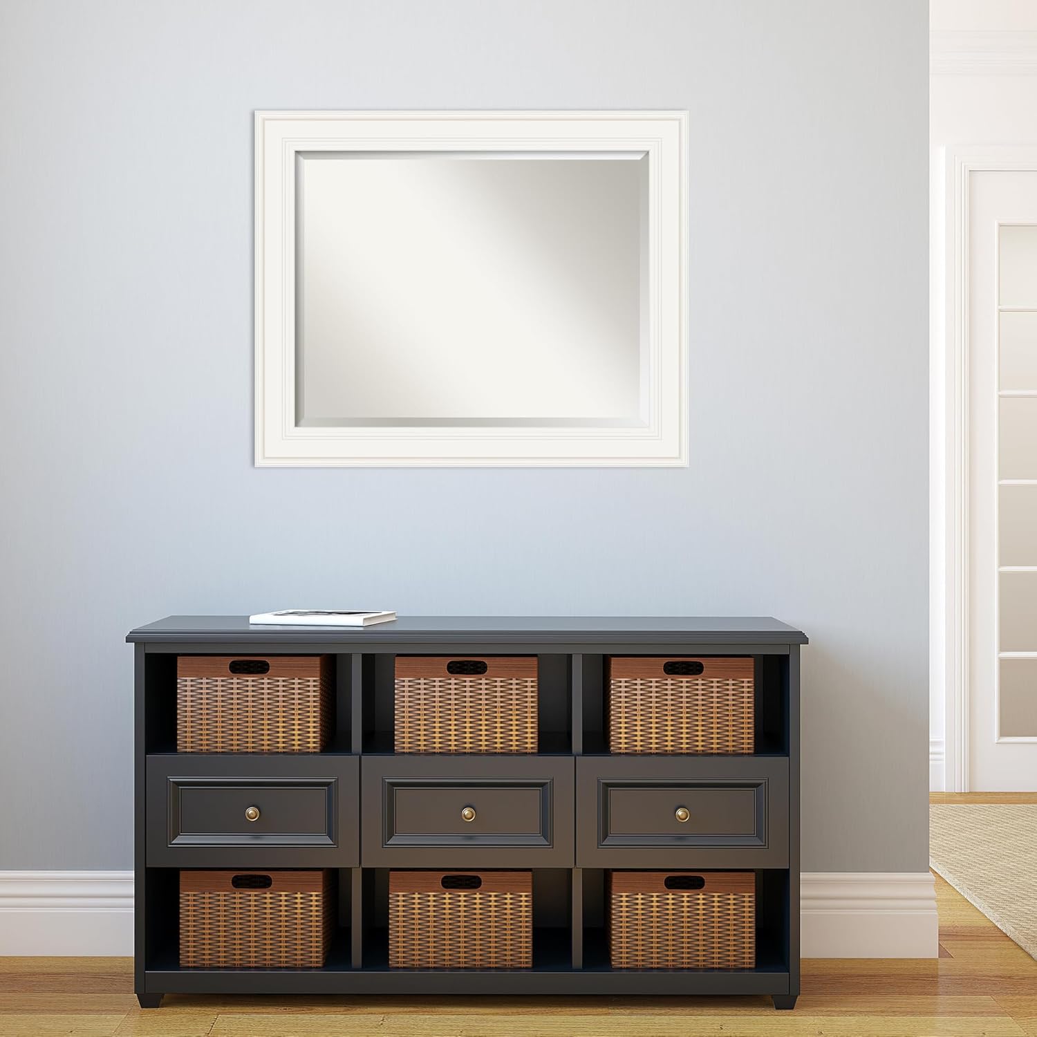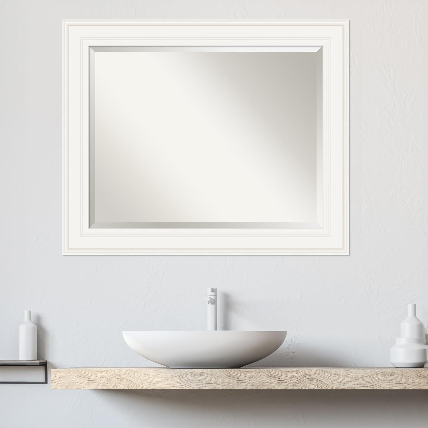 Amanti Art White Bathroom Mirror for Over Sink, 28x34 Ridge White Rectangle Vanity Mirror, Large Traditional Frame, Hangs Horizonally and Vertically, Bathroom Wall Decor, Beveled Edge from WI, USA