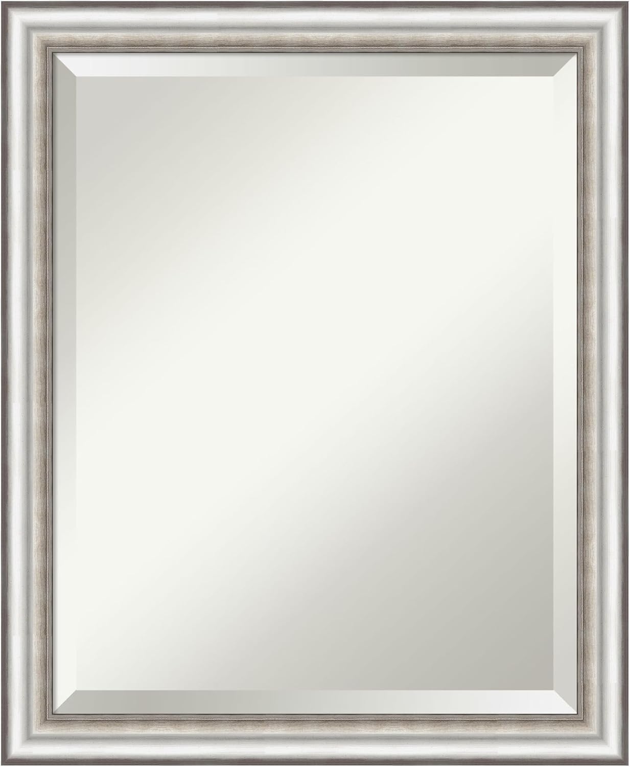 Amanti Art Silver Bathroom Mirror for Over Sink, 23x19 Salon Silver Narrow Rectangle Vanity Mirror, Small Traditional Frame, Hangs Horizonally and Vertically, Bathroom Wall Decor, Beveled Edge