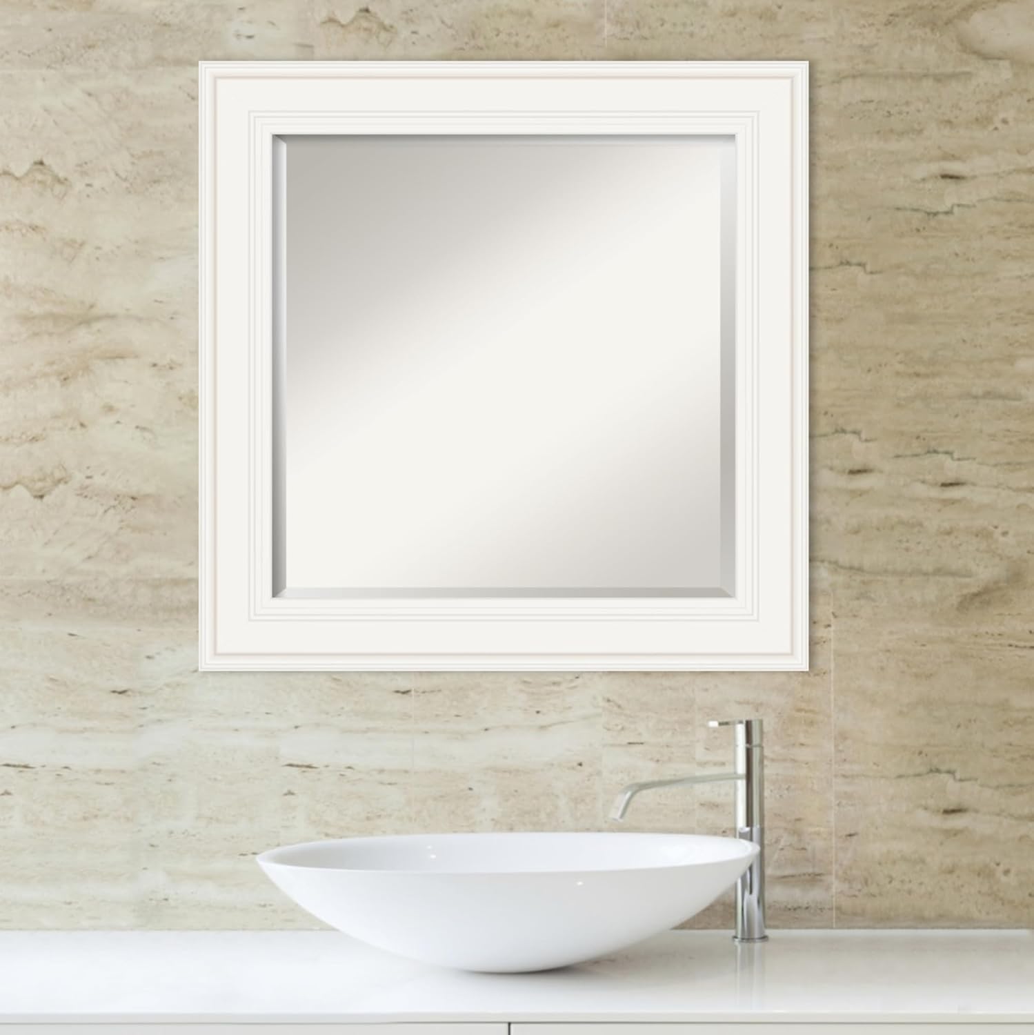 Amanti Art White Bathroom Mirror for Over Sink, 26x26 Ridge White Square Vanity Mirror, Medium Traditional Frame, Hangs Horizonally and Vertically, Bathroom Wall Decor, Beveled Edge from WI, USA