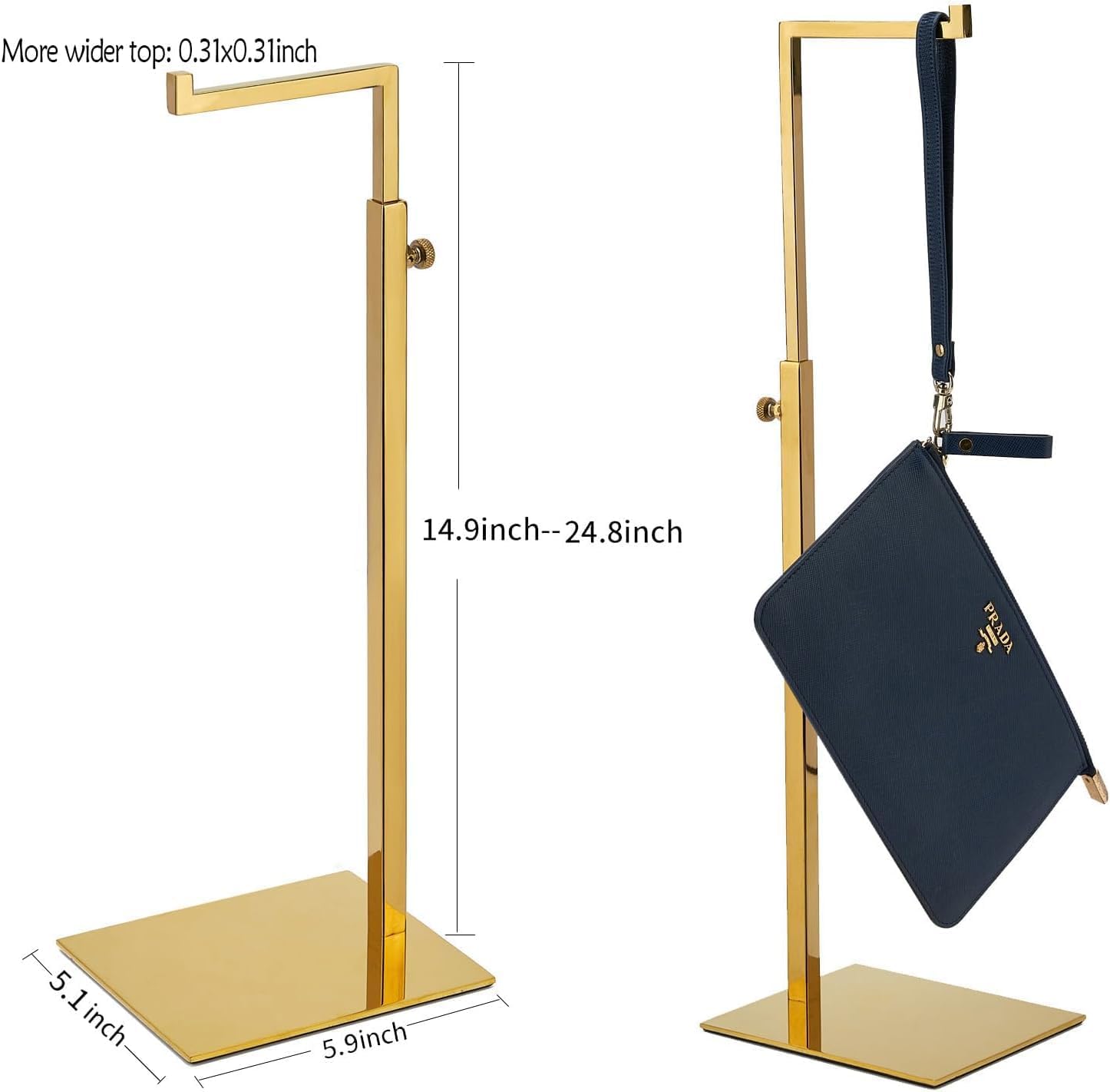 - ADJUSTABLE HEIGHT: The height of the purse display stands can be adjusted from 14.9 inches to 24.8 inches, the thick base plate measures 5.1 in and 5.9 in with enough weight and solid support. The display stand height adjust feature helps closet or retail and vendors to display larger bags and fit several different styles