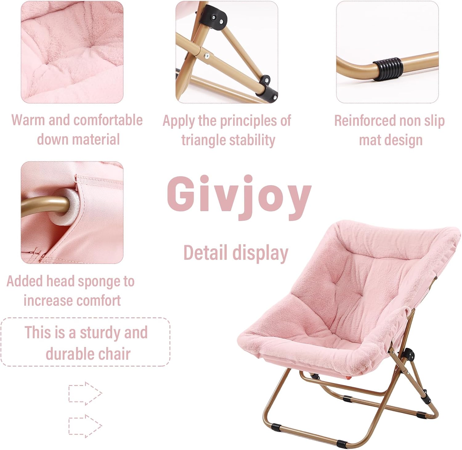 - Sturdy and Robust: This dorm chair features thick Q195 carbon steel, prevents frame breakage, and arched backrest that provide support and comfort for the back. Our folding chair can support up to 330 pounds. The triangular structure design of cozy living room chair enhances stability and reliability. Additionally, And the foot pads on the chair frame can not only prevent the folding chair from tilting and sliding, but also protect the floor from scratches.