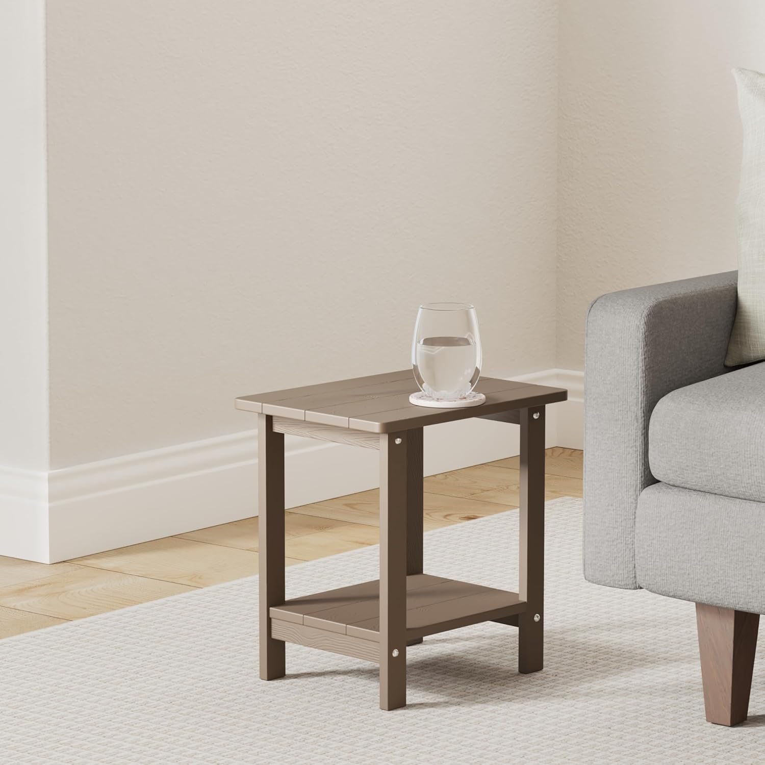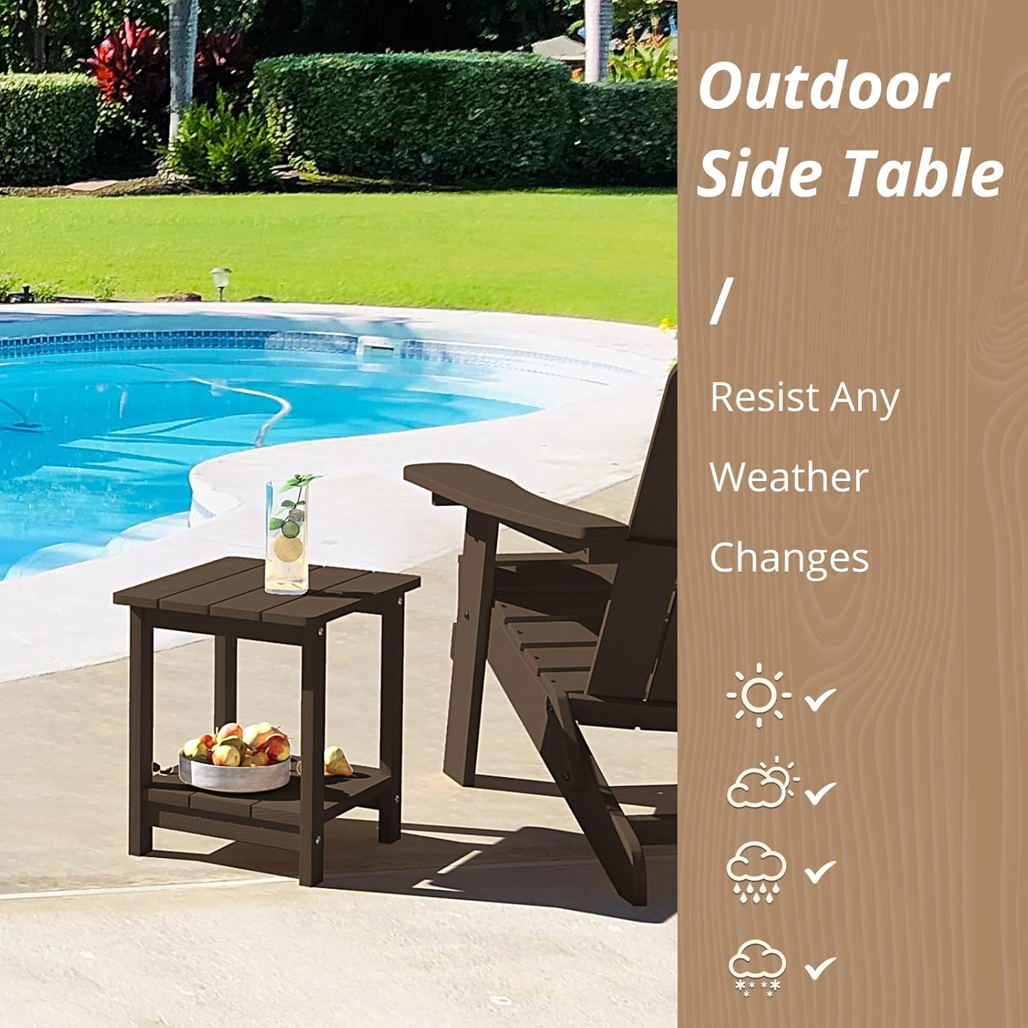 LUE BONA Adirondack Outdoor Side Table, 2-Tier Dark Brown HDPS Patio End Table Weather Resistant,Outdoor Morden Side Table for Patio, Pool, Porch