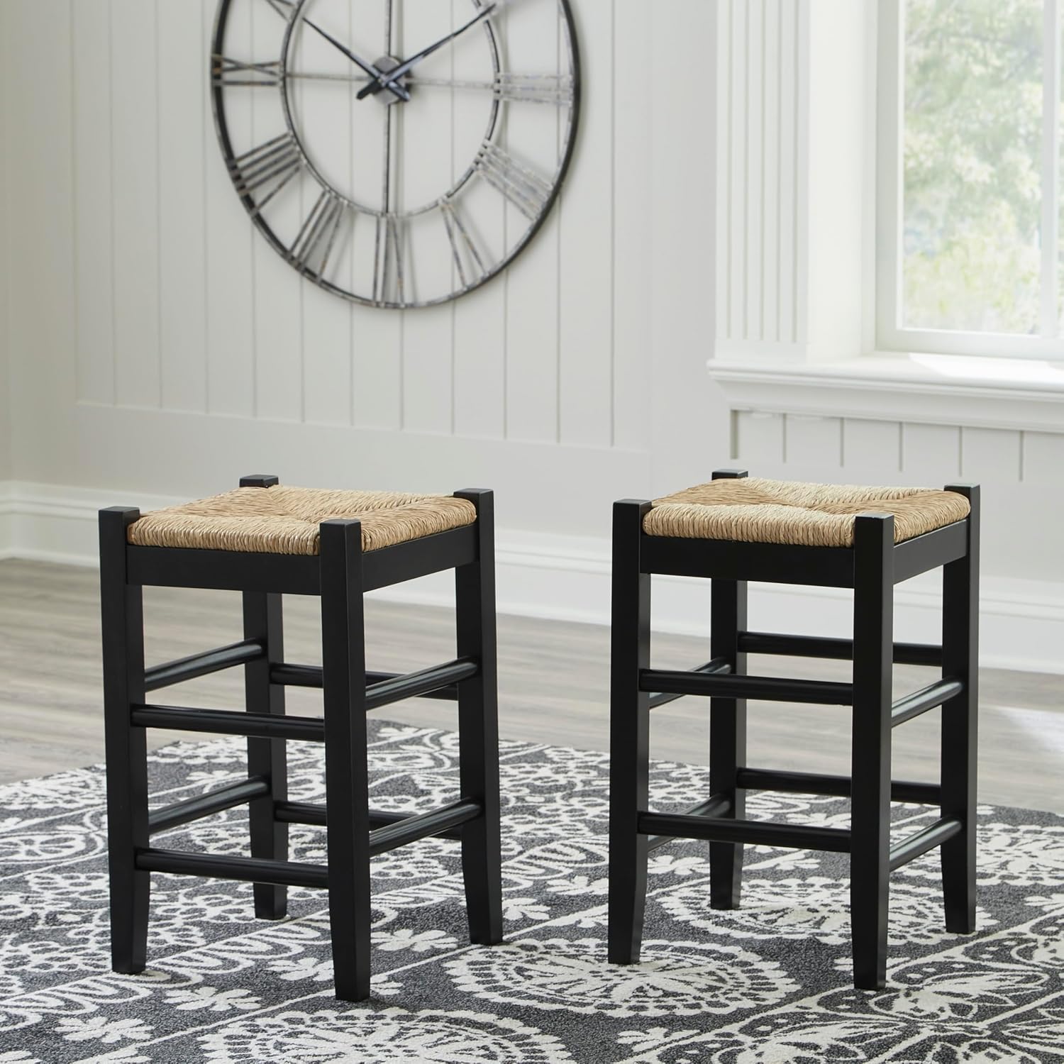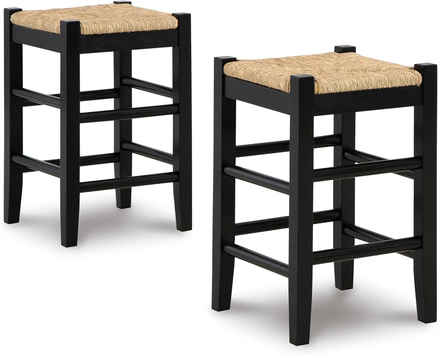 Signature Design by Ashley Mirimyn Farmhouse 23.63" Counter Height Bar Stool with Woven Wicker Seats, 2 Count, Black & Light Brown