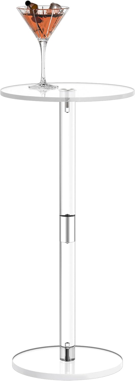 HMYHUM Acrylic Drink Table for Small Spaces, 10" L x 10" W x 21.3" H, Drink Side/End Table for Living Room, Round, Easy Assembly, Clear