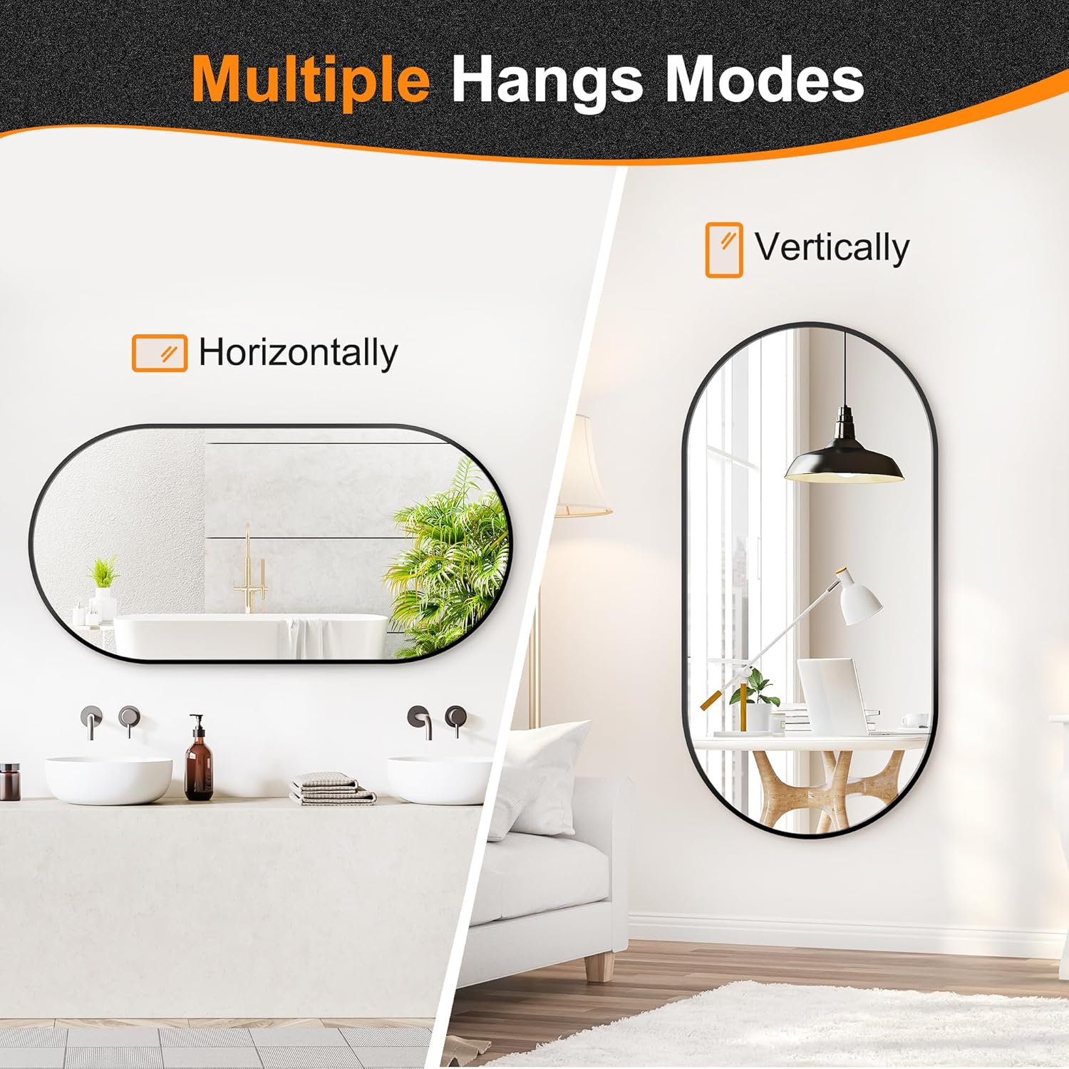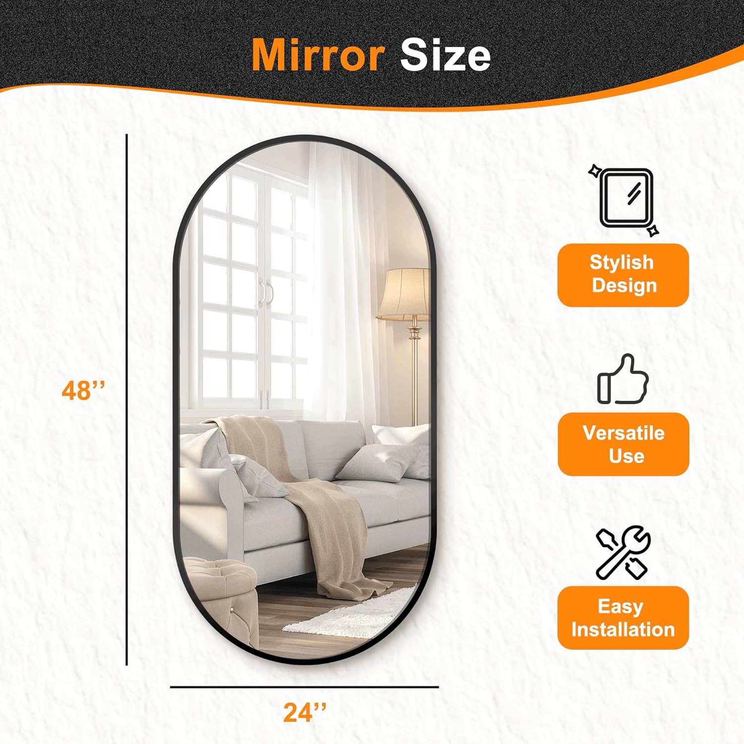 - MODERN & EXCELLENT DESIGN: This wall mirror with excellent design is your best choice for decorating entryway bathroom bedroom and living room. which make your space creative and unique. Mirror size is about 48'' x 24''.