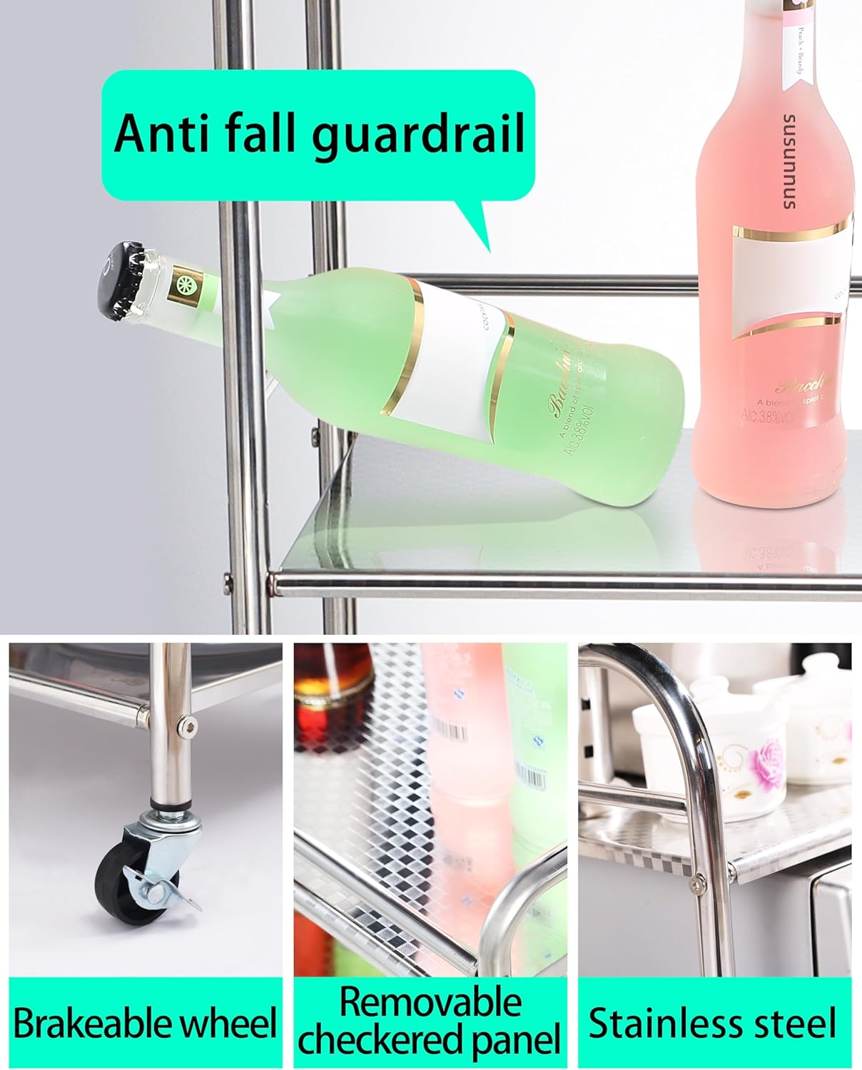 - Multifunctional kitchen cart:New stainless steel small kitchen cart, multi-layer storage space. Practical and portable. Suitable for family kitchen, living room, office, laboratory, beauty salon and so on