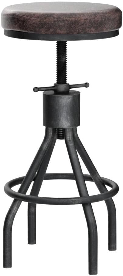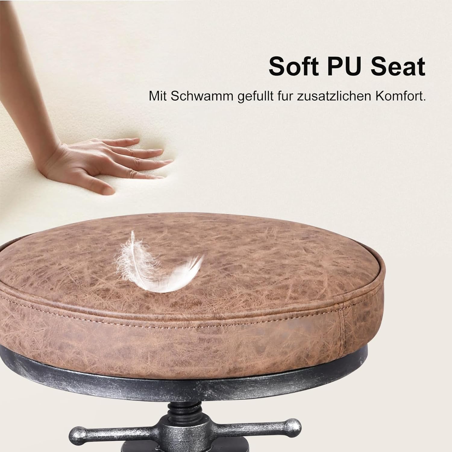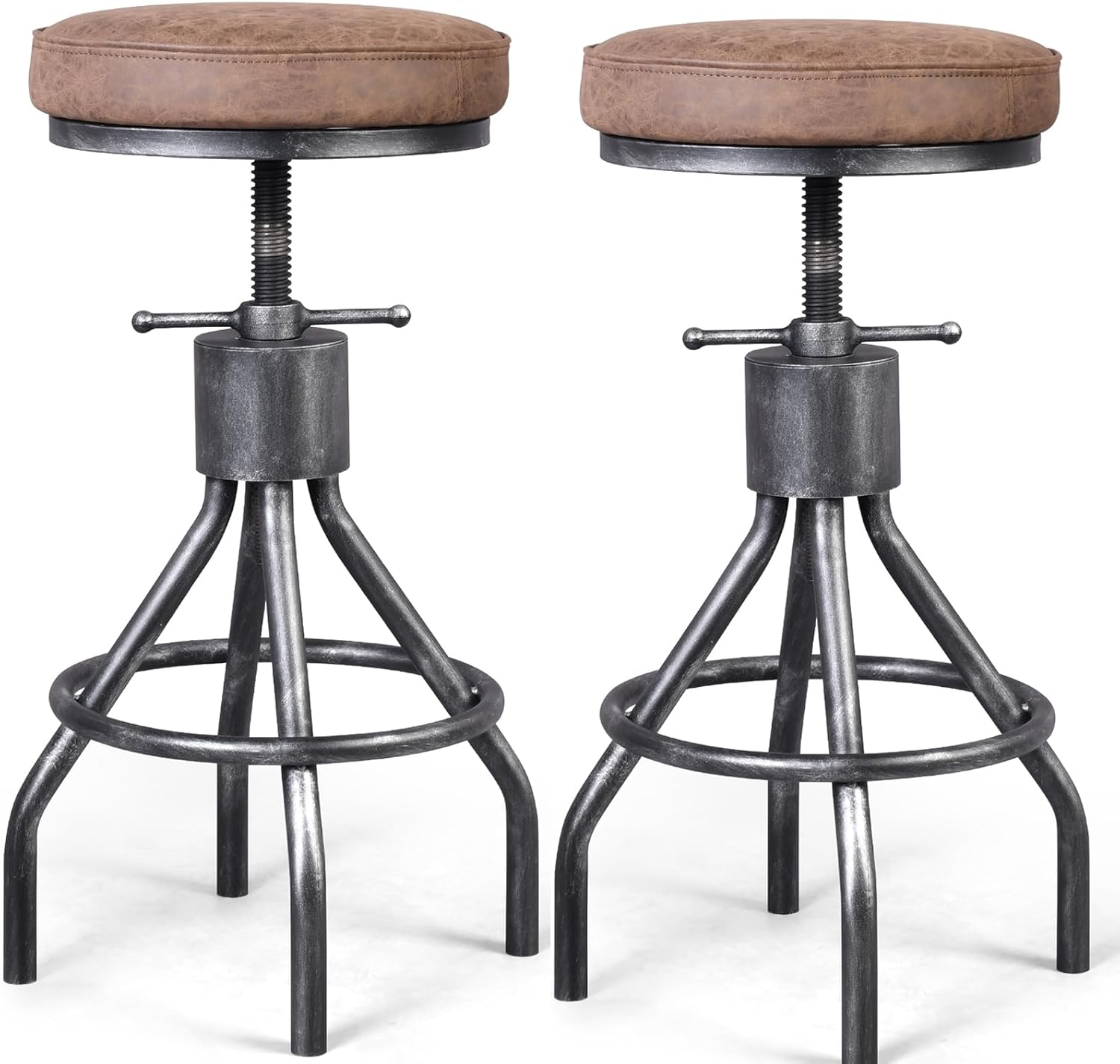 Industrial Bar Stools Swivel Pu Seat Vintage Kitchen Island Counter Stool 23-33inch Height Adjustable Rustic Shop Chair (Set of 2)